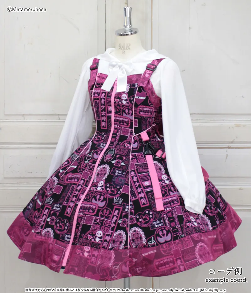 This JSK features swaying decorative straps on the sides and a front zipper, creating a vivid and futuristic world☆