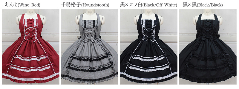 The JSK decorated with plenty of frills and lace. The round collar yoke is detachable. The lined up ribbons and the slightly short skirt are giving JSK a nostalgic feel...♡