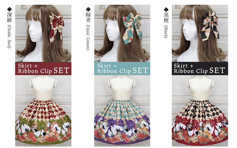 This skirt and ribbon clip set uses popular original print fabric, allowing you to easily enjoy a Japanese Lolita style.