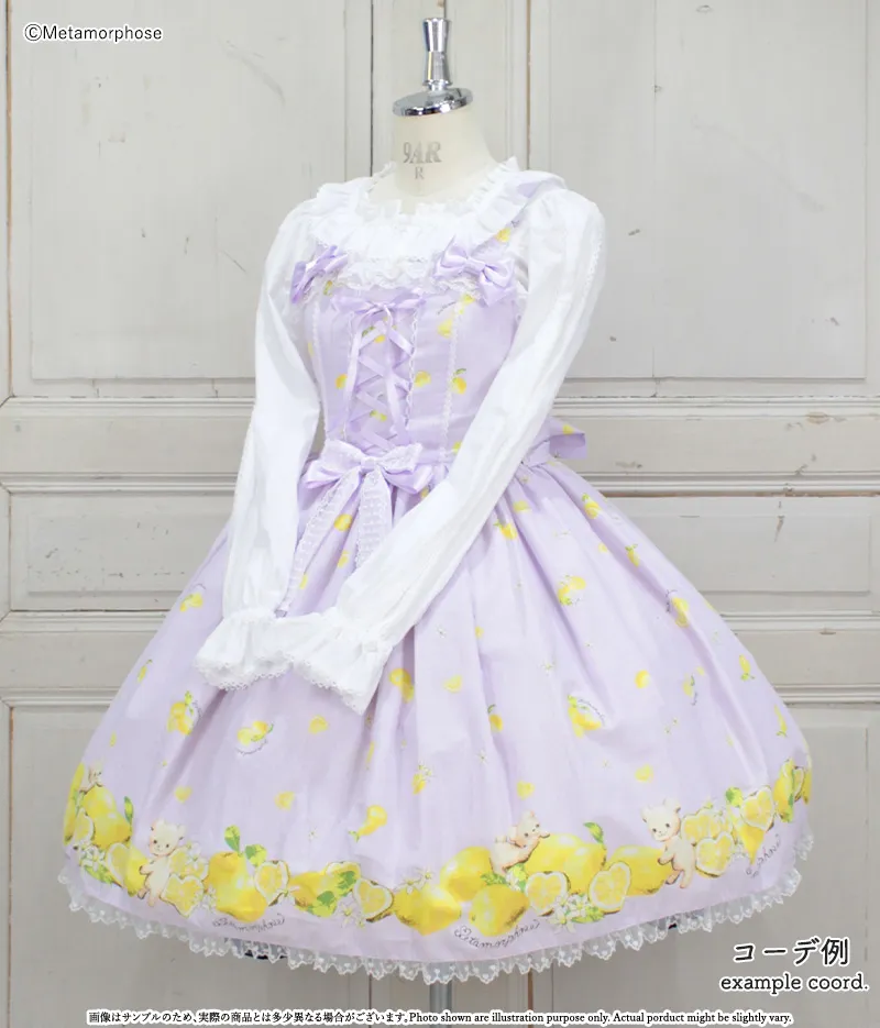<Styling Items> Dreaming Heart♡Lemon Lace-up JSK [Plus Size] Dreaming Heart♡Lemon Lace-up JSK Dreaming Heart♡Lemon Headdress Dreaming Heart♡Lemon Printed Over the Knee Socks Long Sleeve Square Neck Frill Blouse (Broadcloth) [Plus Size] Long Sleeve Square Neck Frill Blouse (Broadcloth) Wood Platform Ribbon Shoes Organdie Frill Pannier [Plus Size] Organdie Frill Pannier