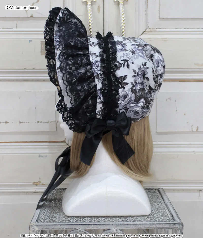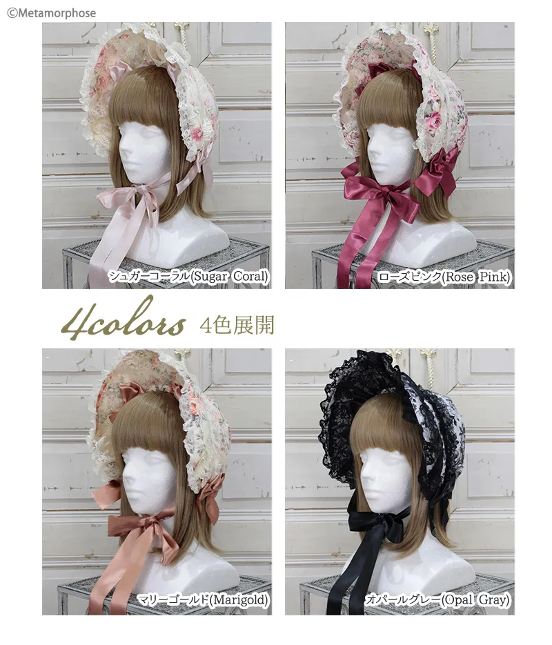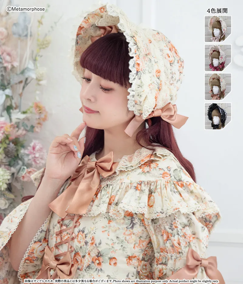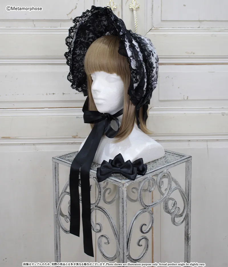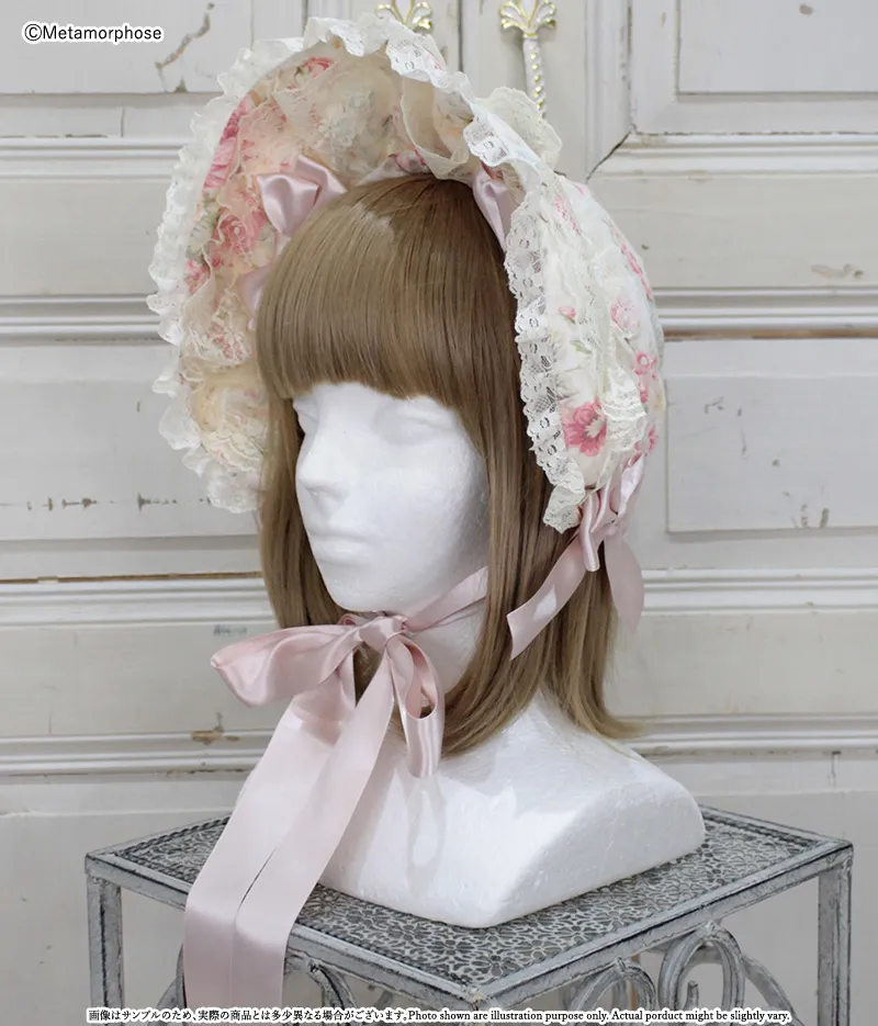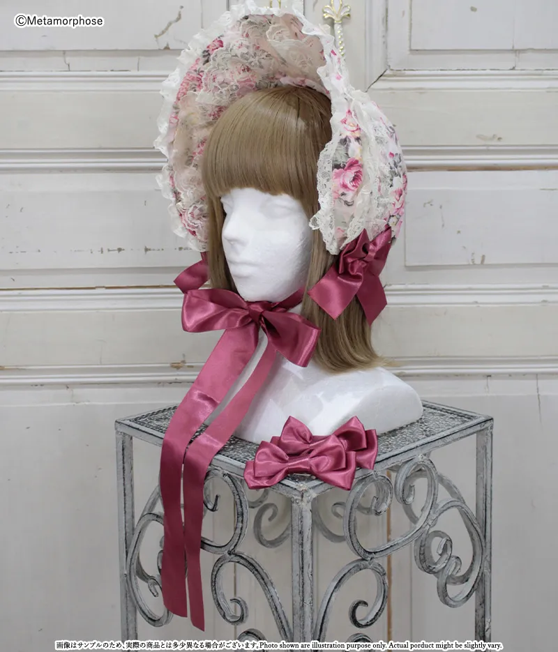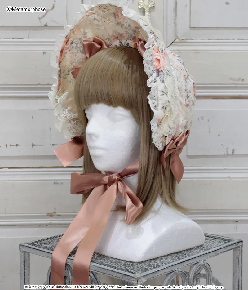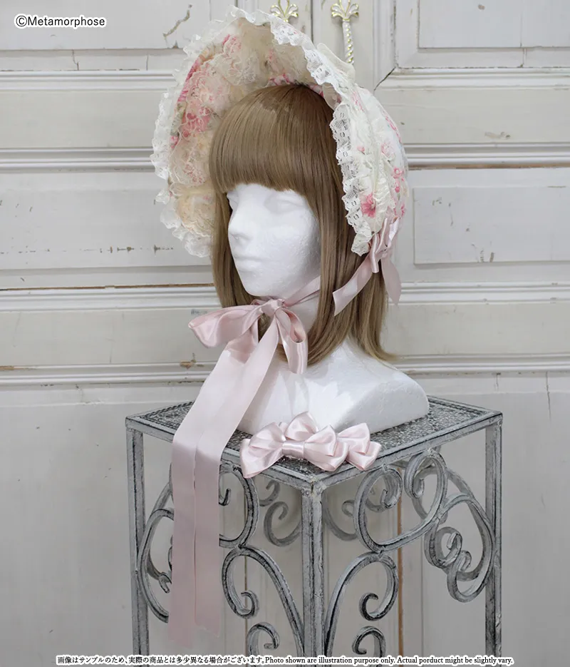 The bonnet that softly covers the head is decorated with plenty of lace. The bonnet is the perfect item to finish up your classic and gorgeous style♪