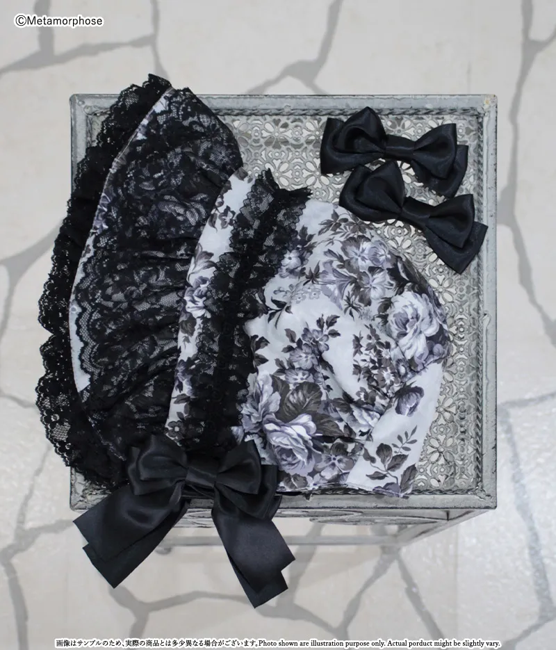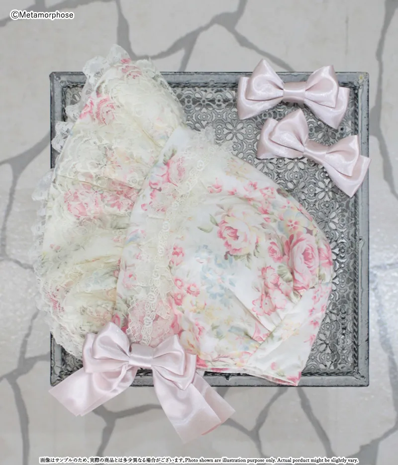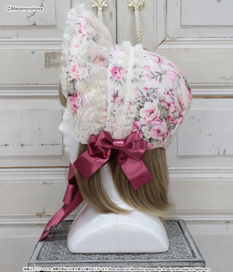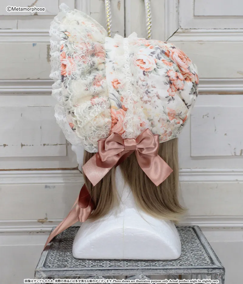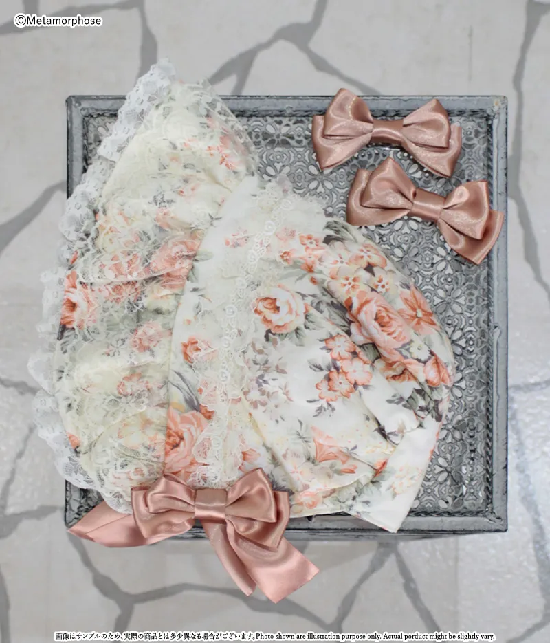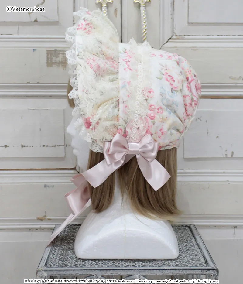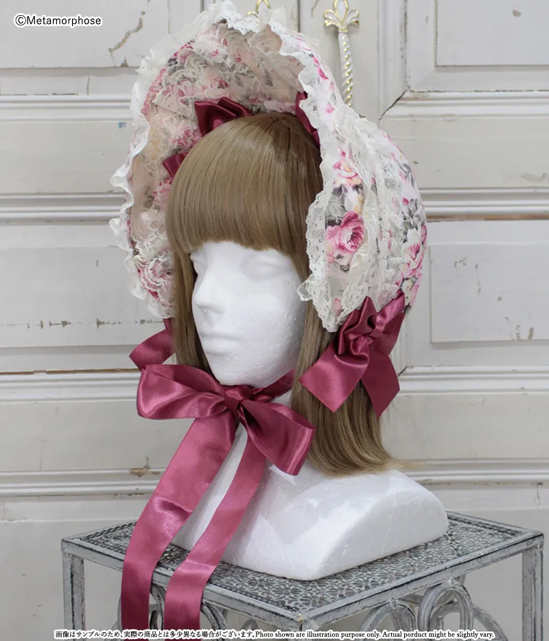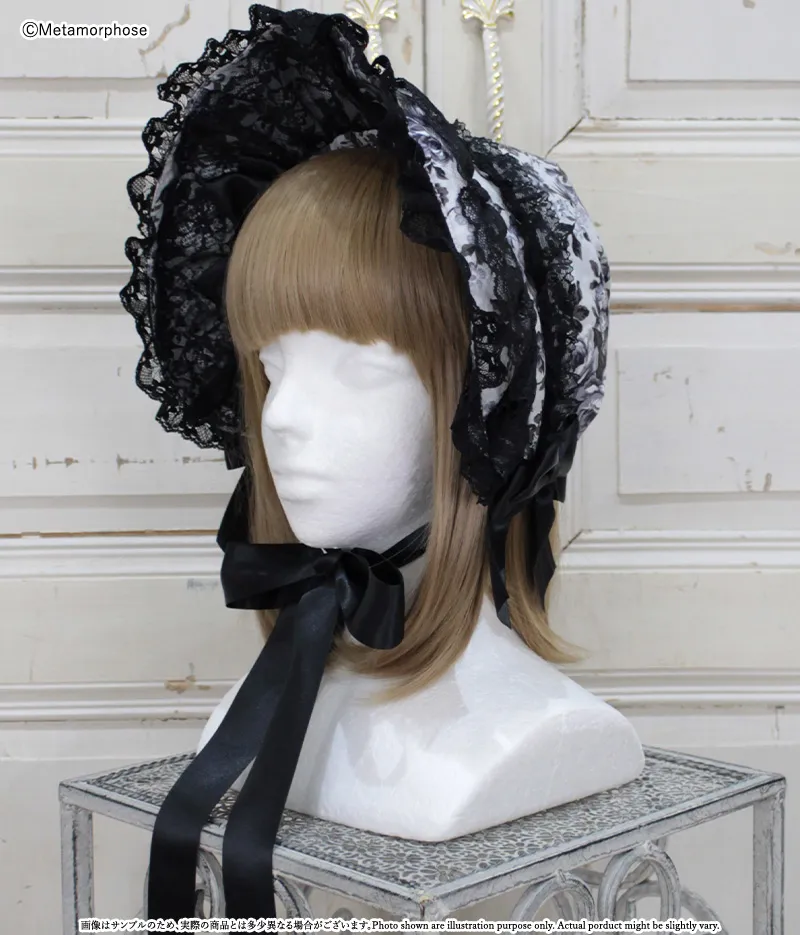 The bonnet that softly covers the head is decorated with plenty of lace. The bonnet is the perfect item to finish up your classic and gorgeous style♪