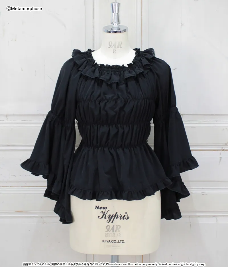 [Plus Size] Shirring Frill Princess Wide Sleeve Blouse