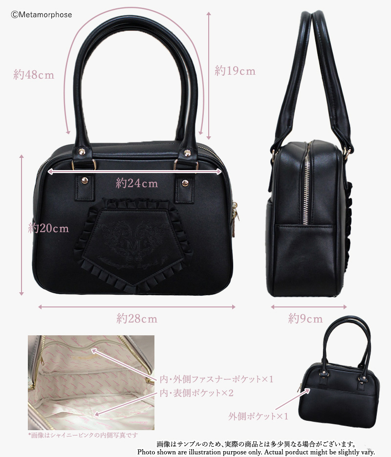 A damask heart logo is embroidered in the center surrounded by frills ♪ The bag is large enough to put your belongings. Please enjoy your outing ♡