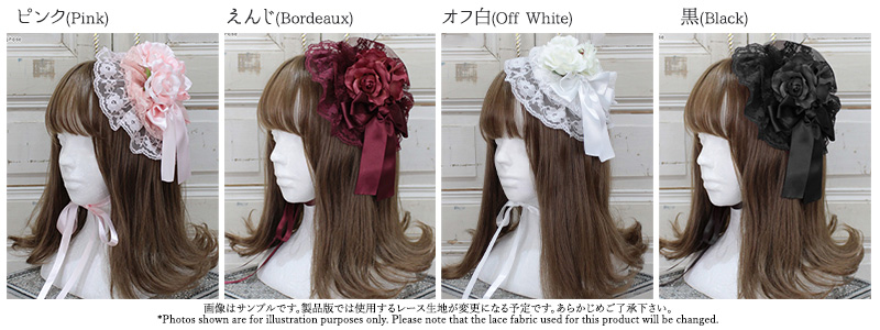 A round headdress decorated with plenty of lace and a rose flower is the perfect item to finish up an elegant look ♥ This item is easy to match with other series clothes.