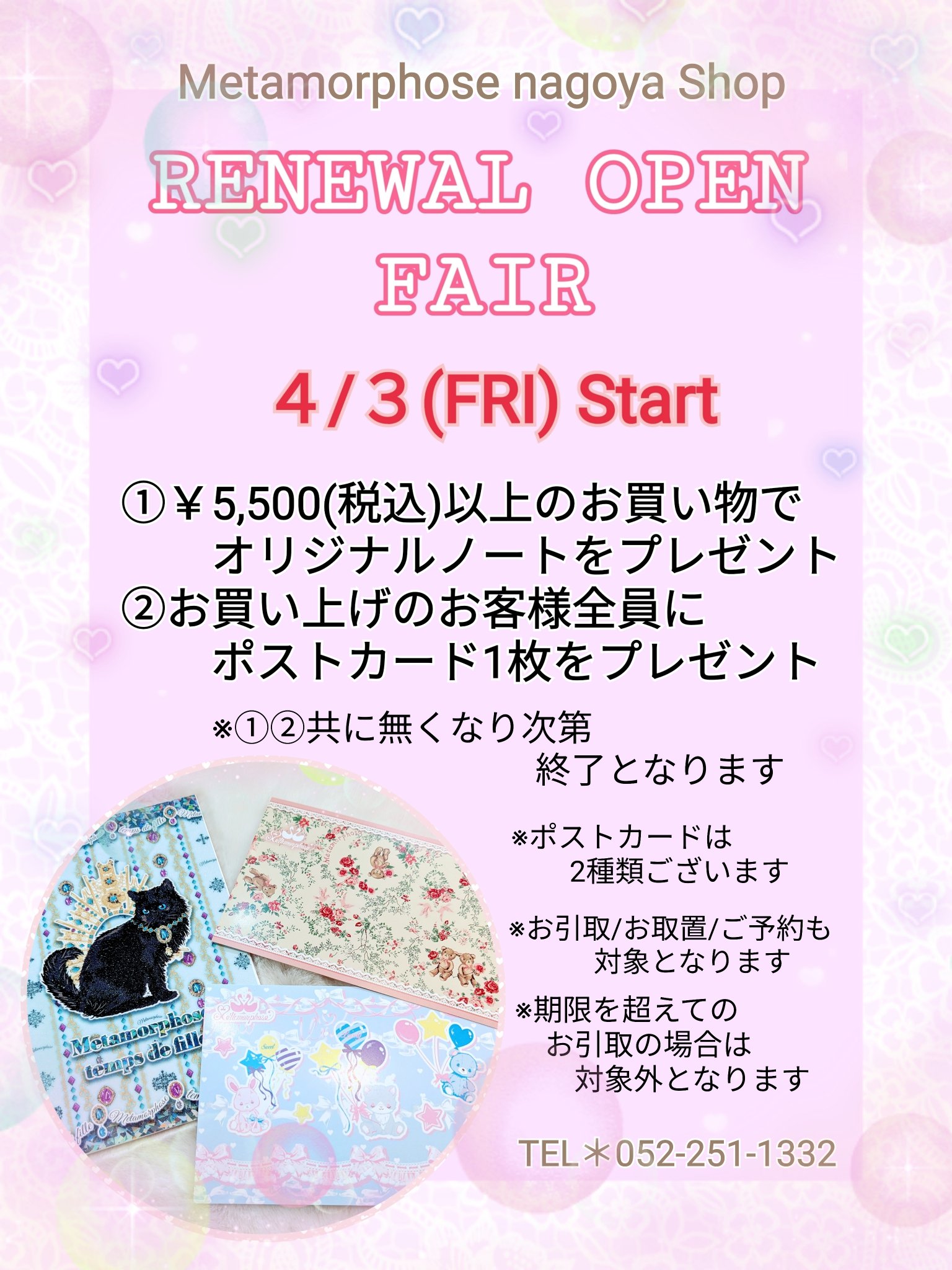 【名古屋店】4/3(金)リニューアルオープンフェアのお知らせ