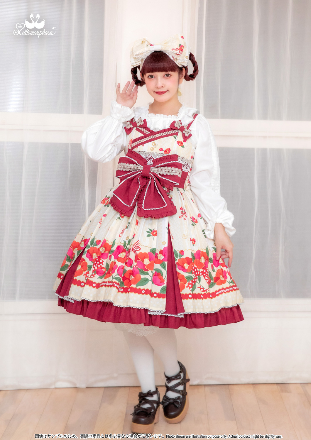 <搭配商品> おとめの恋つばき タックジャンパースカート 【プラスサイズ】おとめの恋つばき タックジャンパースカート 纯色荷叶领全松紧长袖衬衫 【Plus size】纯色荷叶领全松紧长袖衬衫 おとめの恋つばき リボンヘッドドレス ラッセルレースオーバーニー(サイズ2) 蕾丝过膝袜 木底风蝴蝶结厚底鞋 欧根纱裙撑(50cm) 【Plus size】欧根纱裙撑(54cm)
