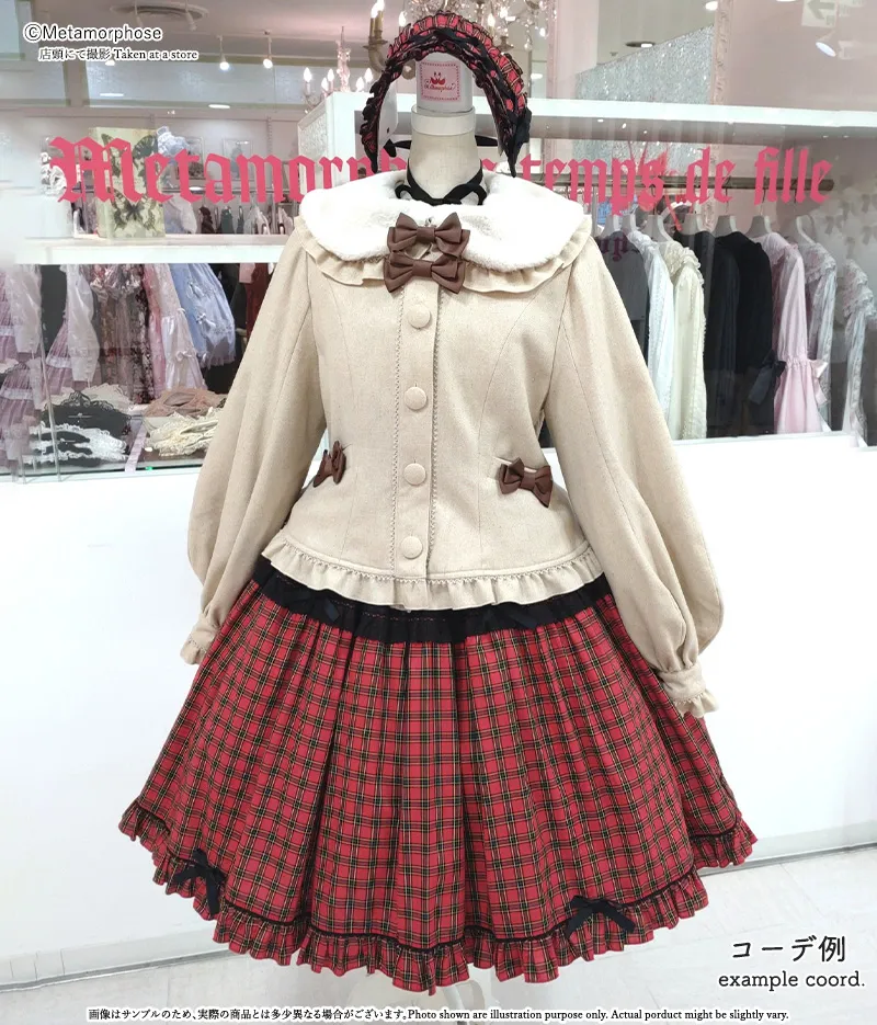 ・酒红色(Bordeaux)×酒红色蕾丝×酒红色蝴蝶结×米色毛领
