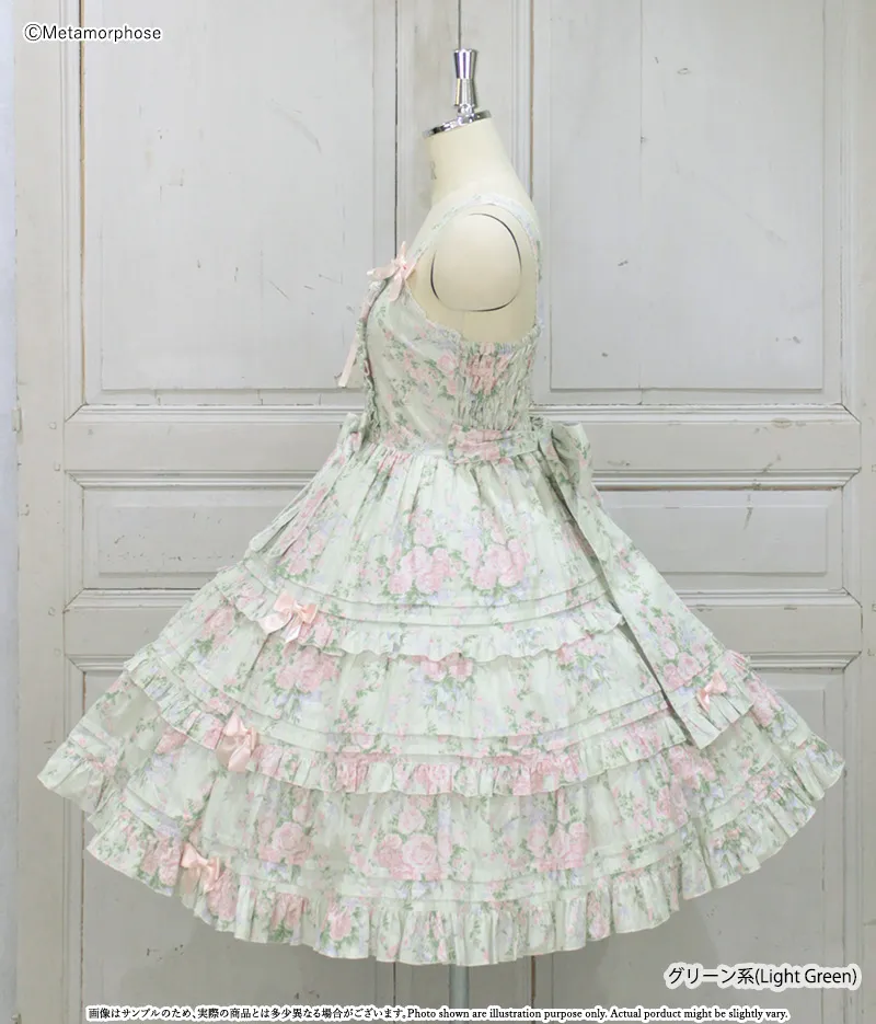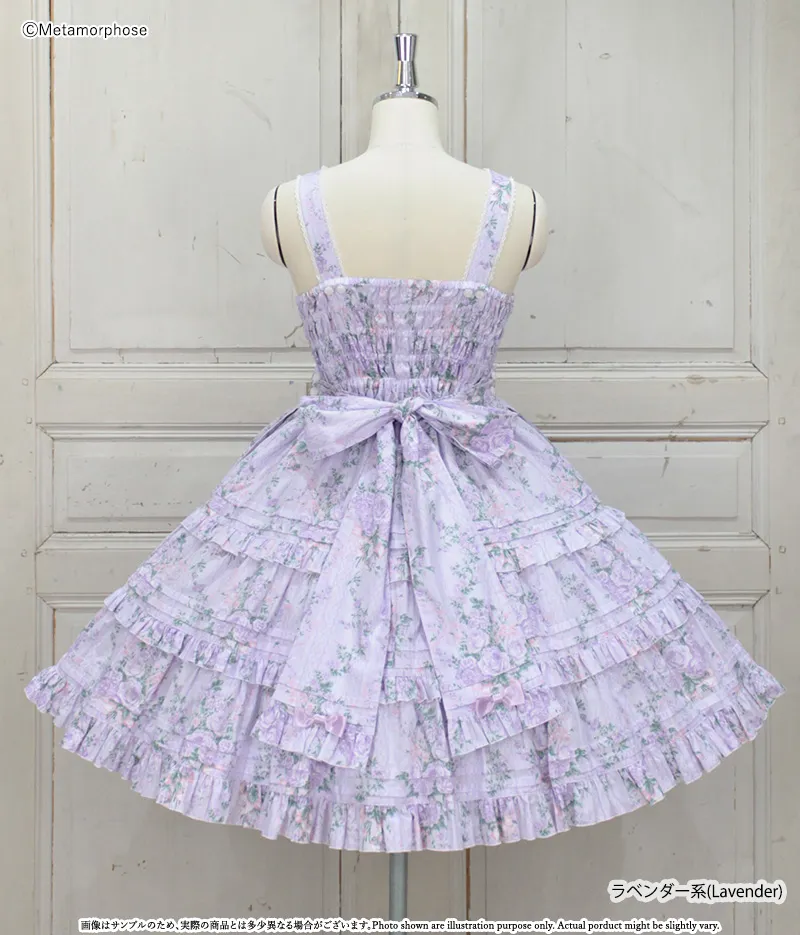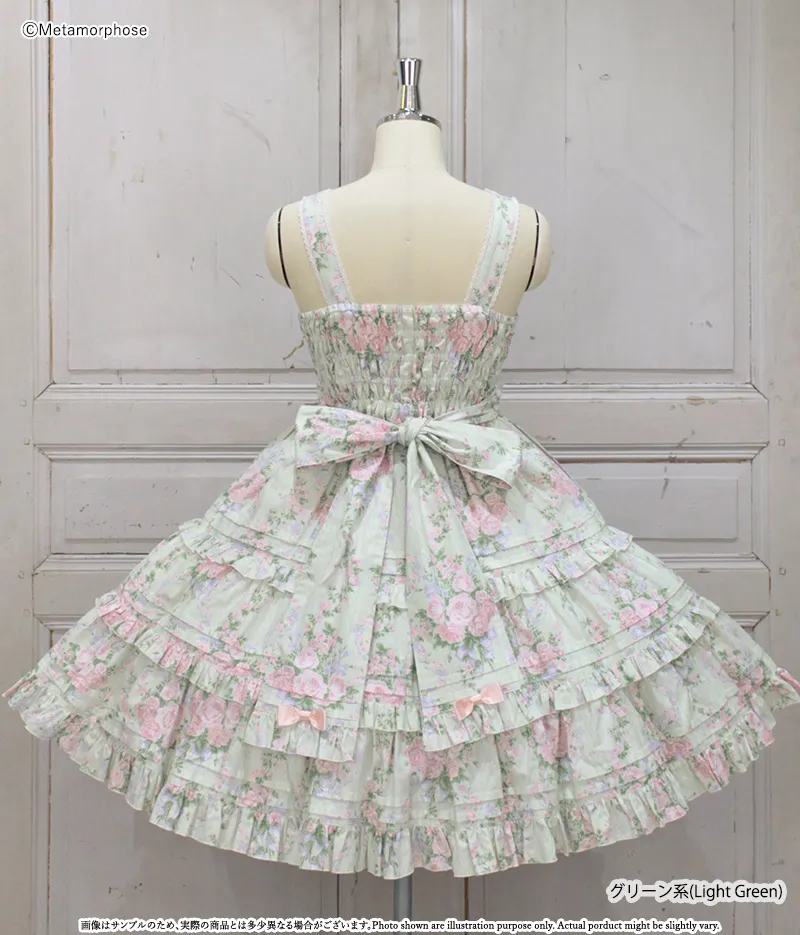 三段拼接的裙擺增加層次感與份量感,每層以細摺和花邊點綴,充滿浪漫氛圍的JSK。