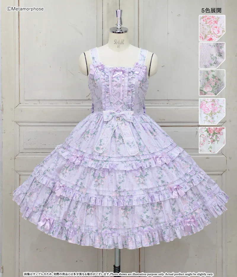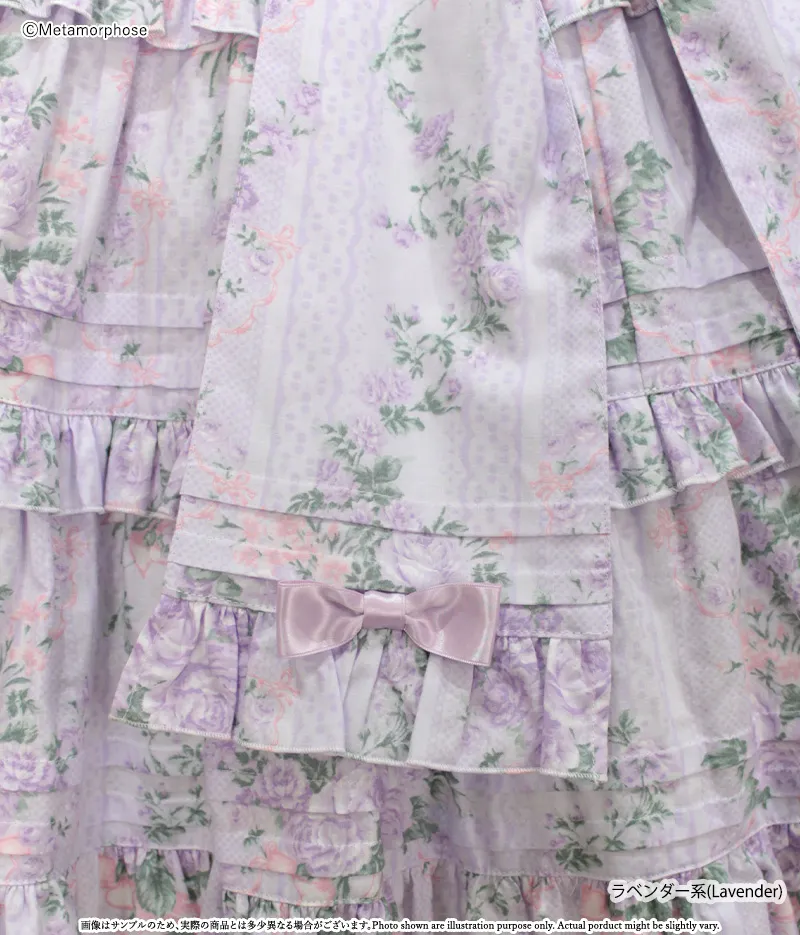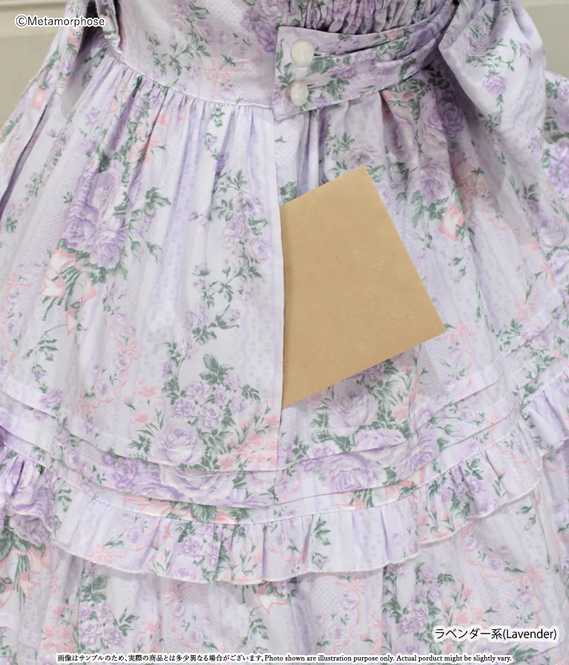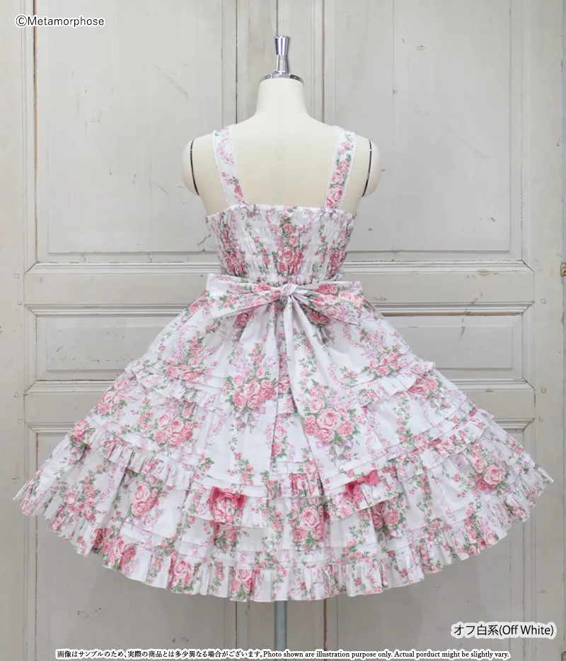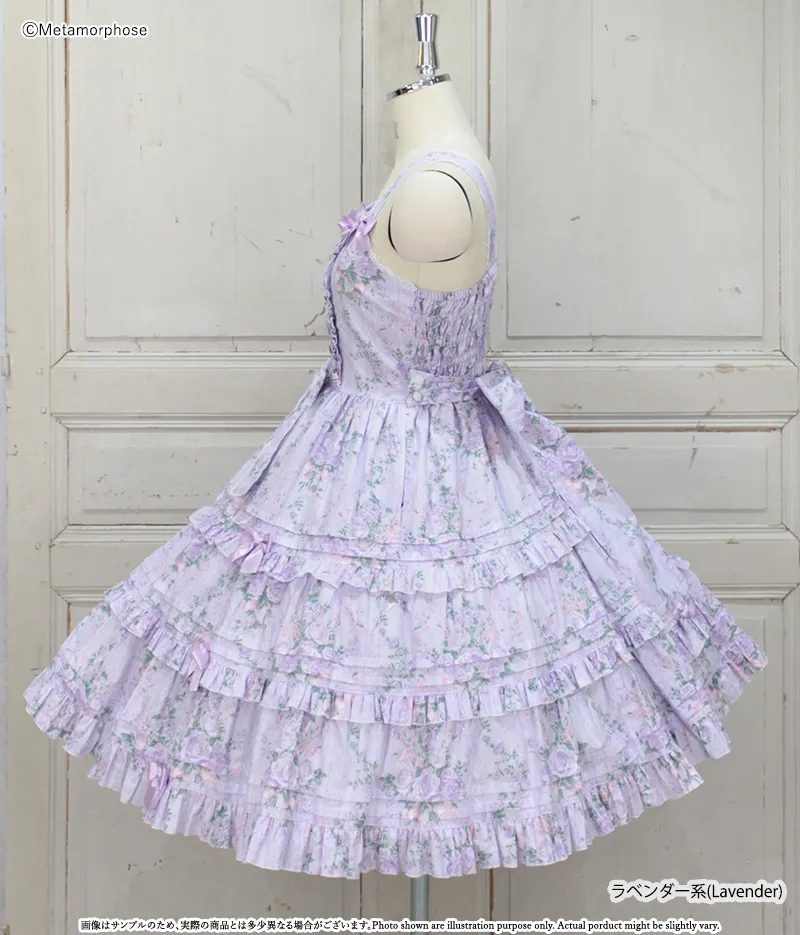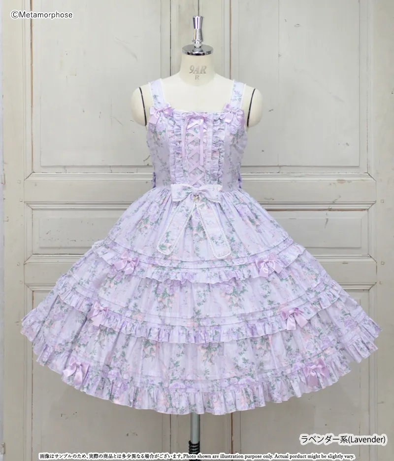 三段拼接的裙擺增加層次感與份量感,每層以細摺和花邊點綴,充滿浪漫氛圍的JSK。