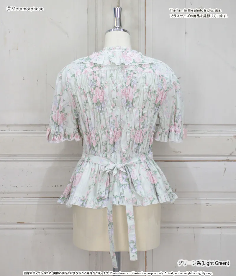 シャーリング部分にはゴムを使用しておりますので生地の厚み等の理由により表記サイズから若干前後する事がございます事をご了承ください。