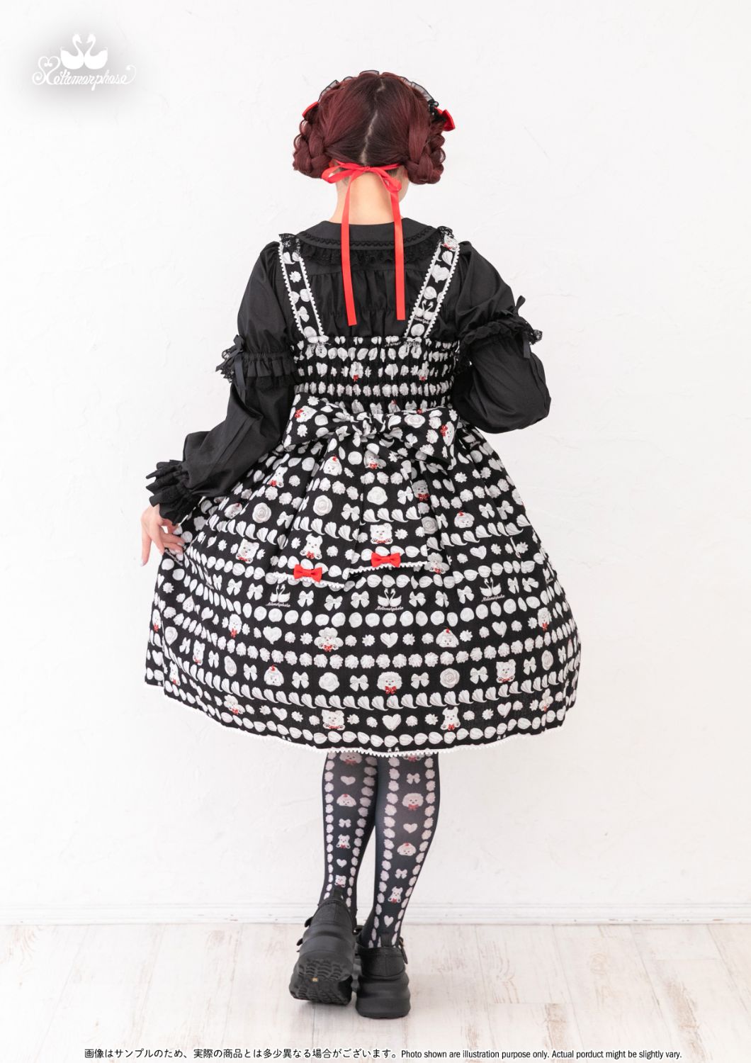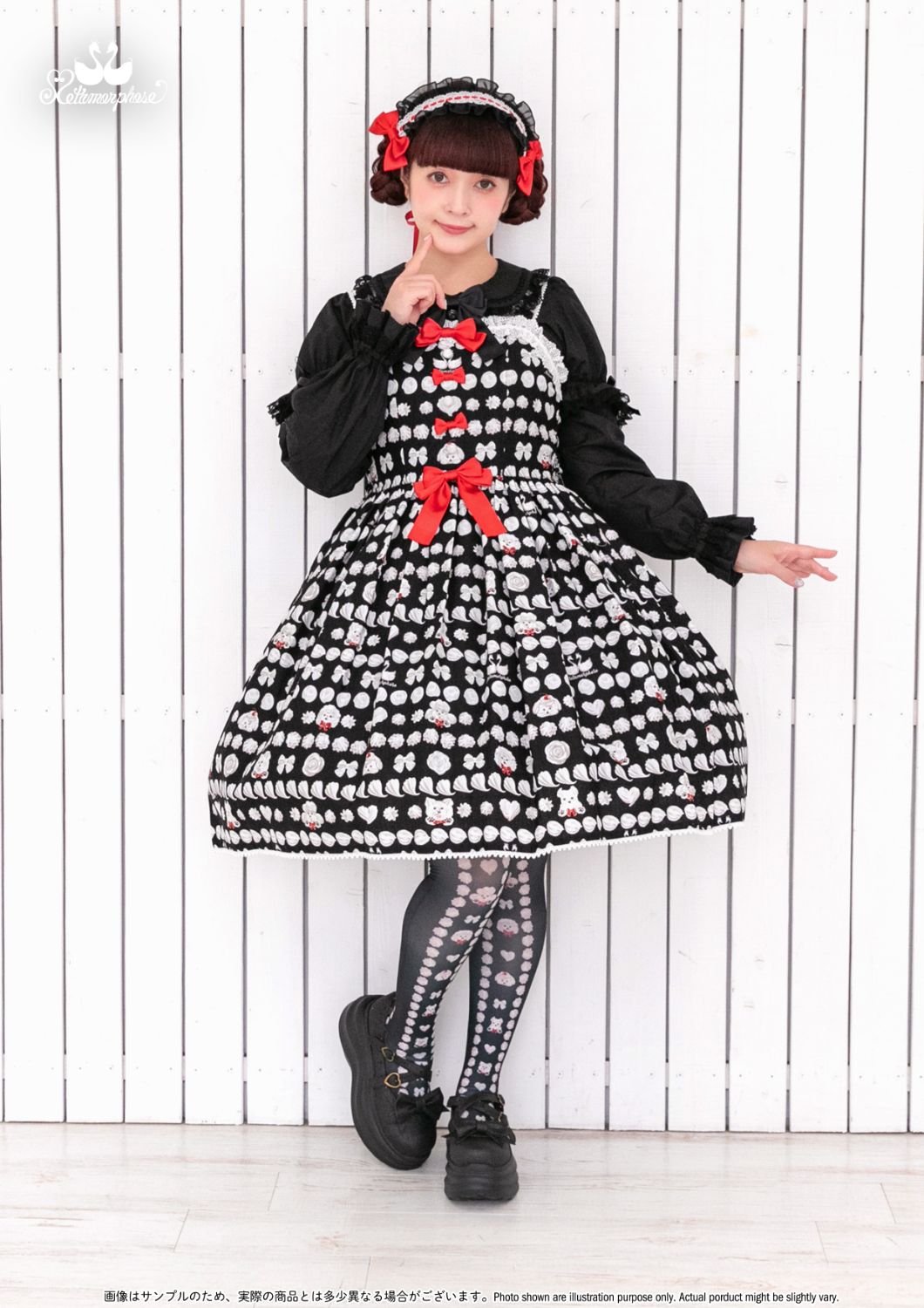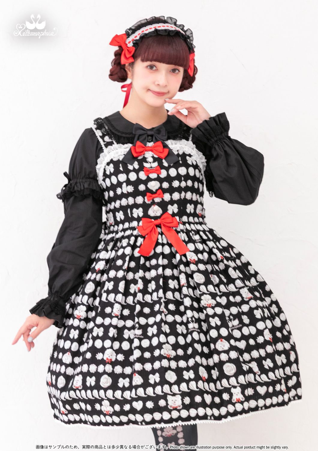 No.1025 ふわふわメレンゲクッキー リボンジャンパースカート 黒(Black)