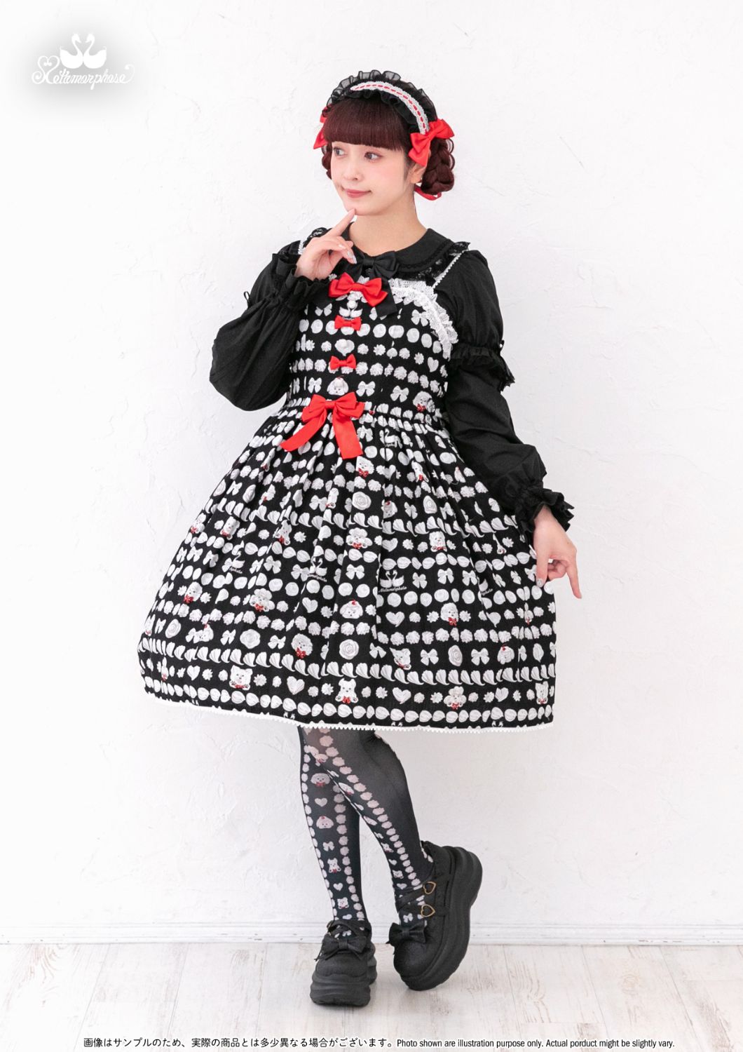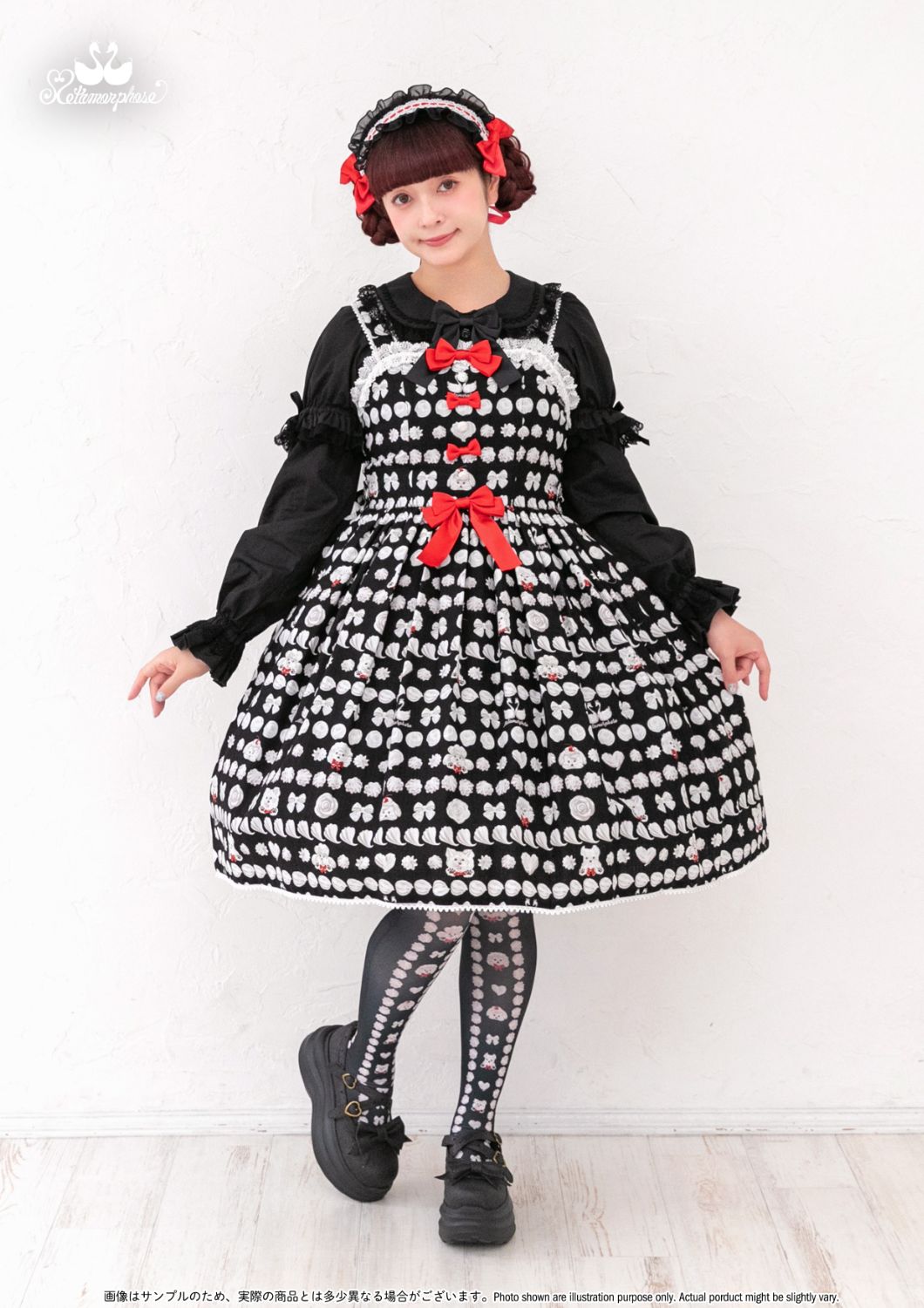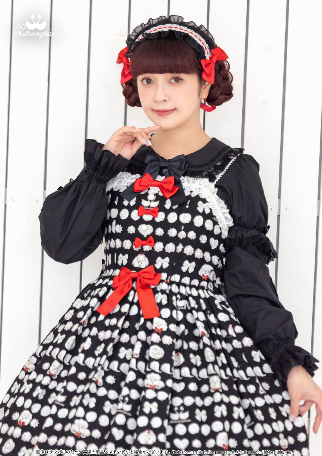 No.1025 ふわふわメレンゲクッキー リボンジャンパースカート 黒(Black)