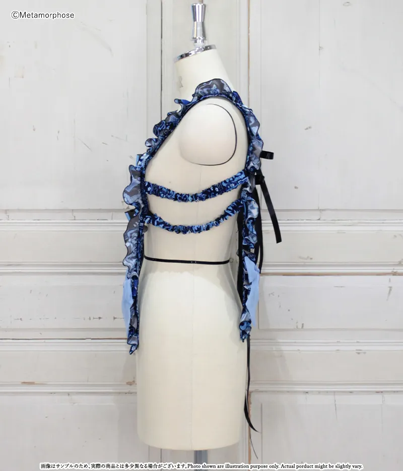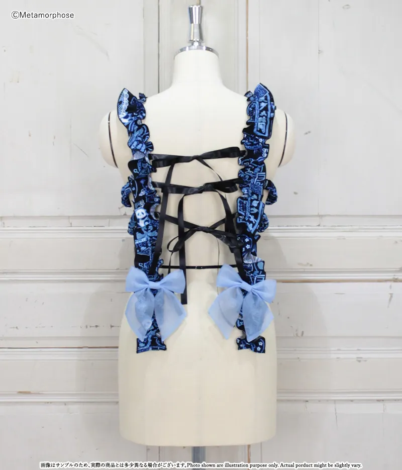 胸元から肩にかけて広がるフリルと目を引くリボンが、動くたびにふわりと揺れてとても華やかな印象のハーネスです☆