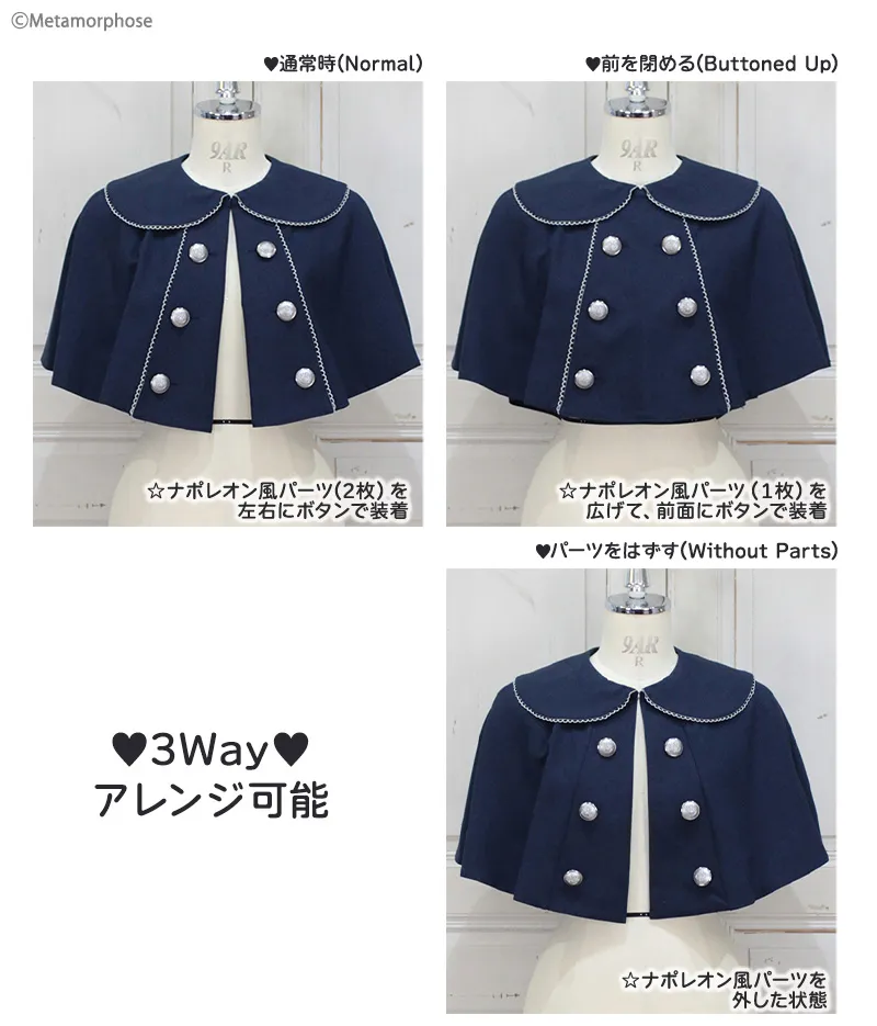 ナポレオン風パーツのつけ方で3Wayアレンジ可能