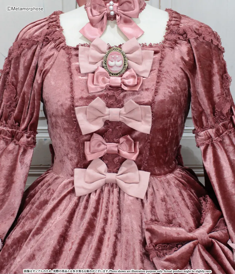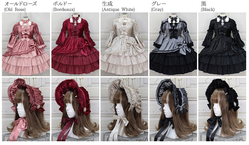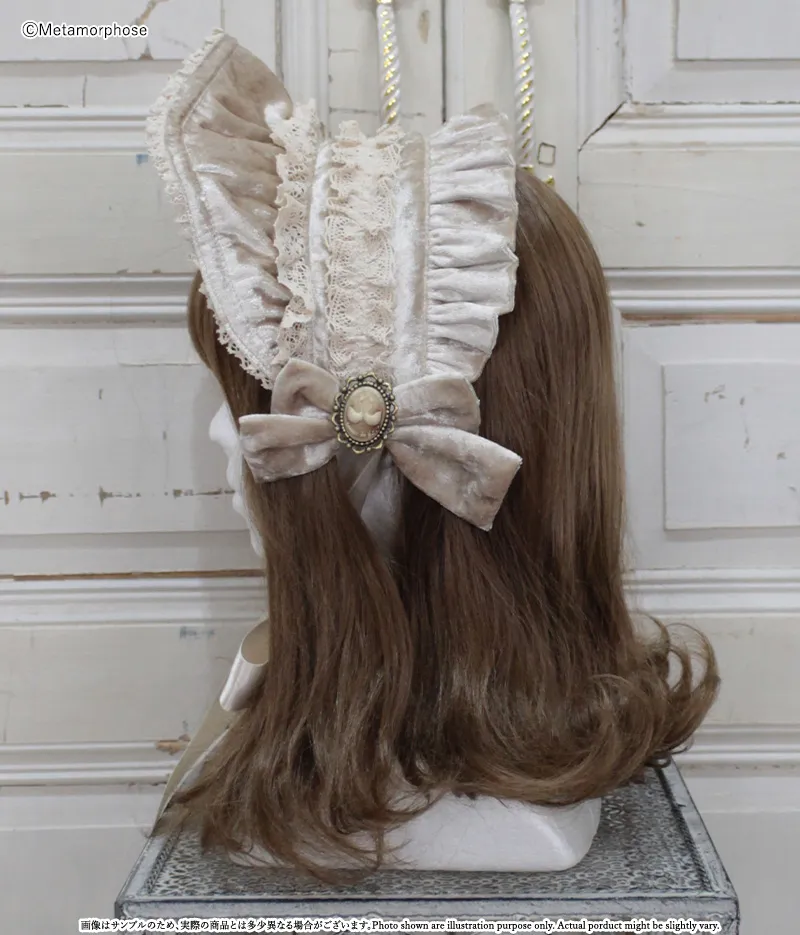 大カメオブローチ(ドレス胸元)、後ウエストリボン、ハーフボンネットリボンブローチ、ハーフボンネット(両サイド小カメオブローチ)