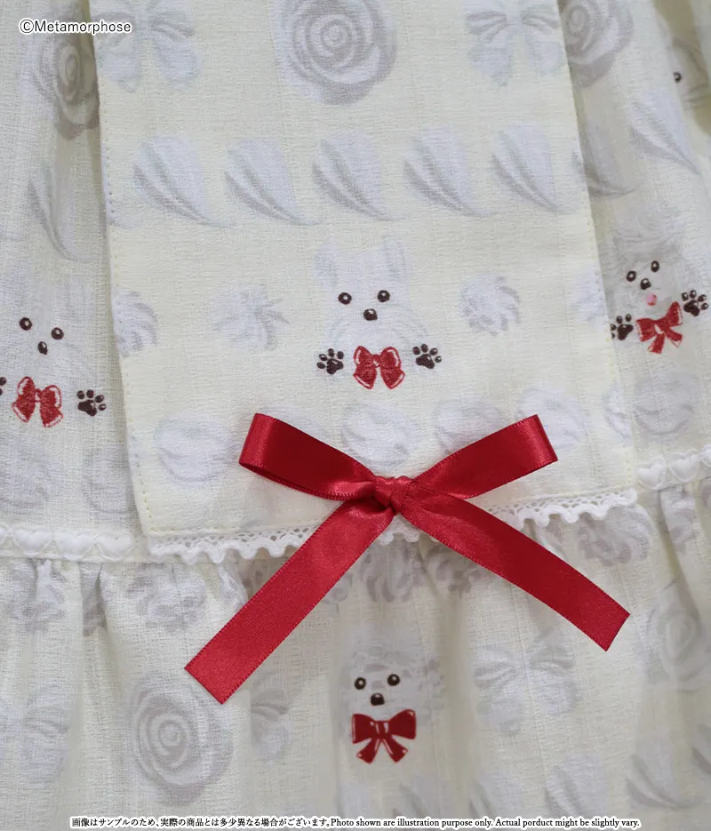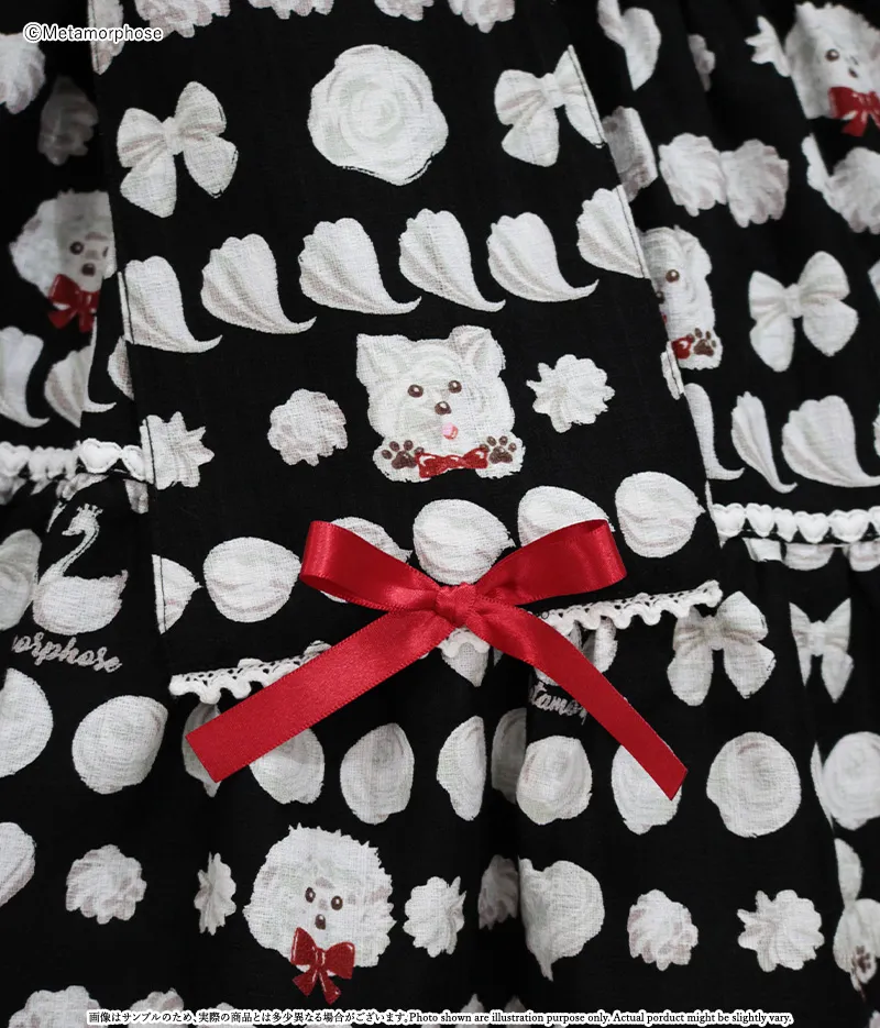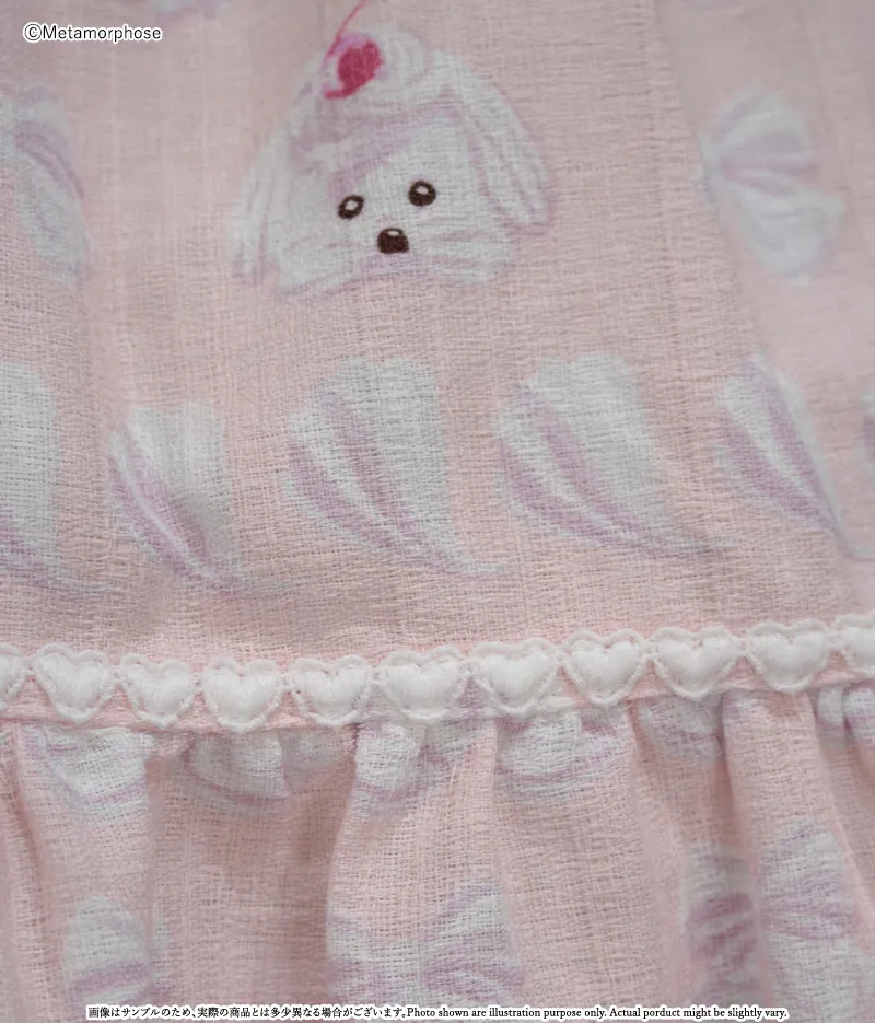 オリジナル【ふわふわメレンゲクッキー 】プリント生地/バニラン(綿100%)、裏地(ポリエステル100%)、トーションレース、ケミカルレース、サテンリボン(ツヤあり)