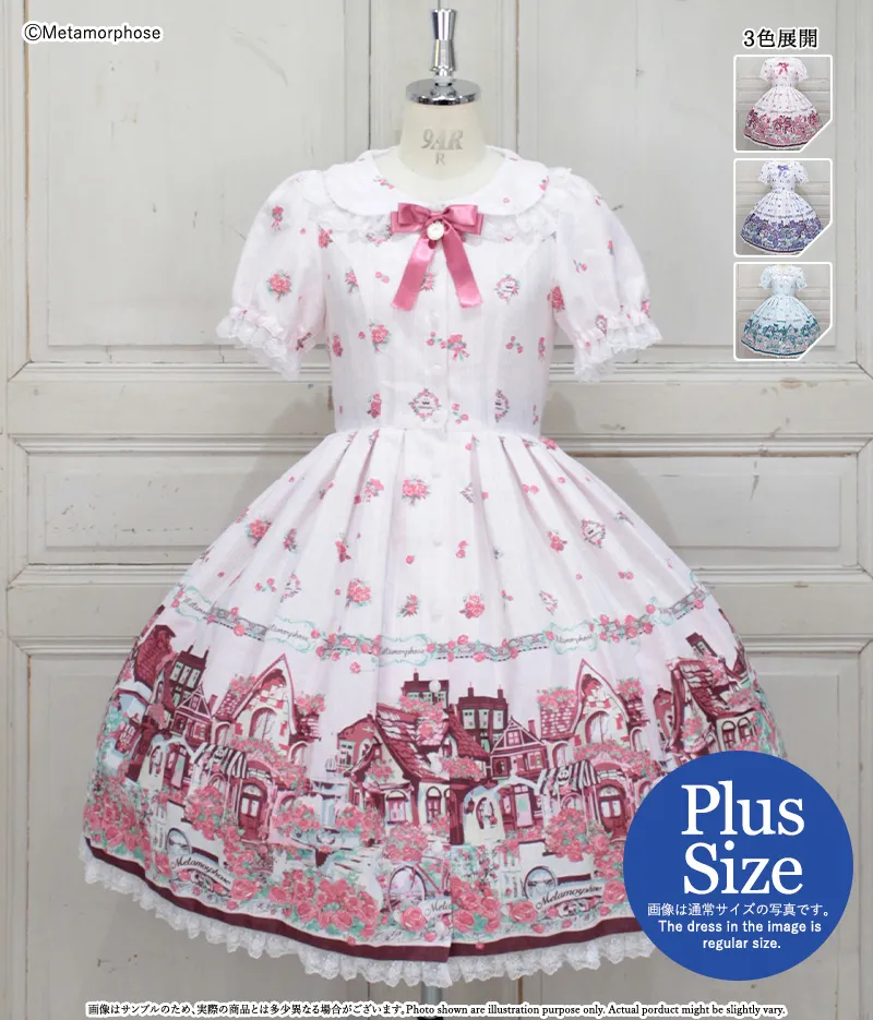 <スタイリングアイテム> Maison des roses~美しき街並み~半袖ワンピース 【プラスサイズ】Maison des roses~美しき街並み~半袖ワンピース Maison des roses~美しき街並み~リボンクリップ ラッセルレースクルーソックス 木底風リボンシューズ オーガンジーフリルパニエ 【プラスサイズ】オーガンジーフリルパニエ