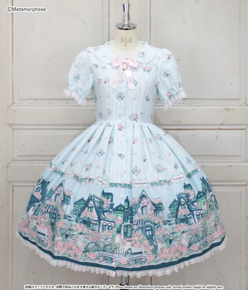 <スタイリングアイテム> Maison des roses~美しき街並み~半袖ワンピース 【プラスサイズ】Maison des roses~美しき街並み~半袖ワンピース Maison des roses~美しき街並み~リボンクリップ ラッセルレースクルーソックス 木底風リボンシューズ オーガンジーフリルパニエ 【プラスサイズ】オーガンジーフリルパニエ