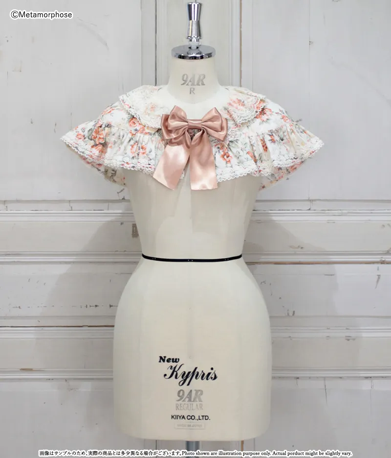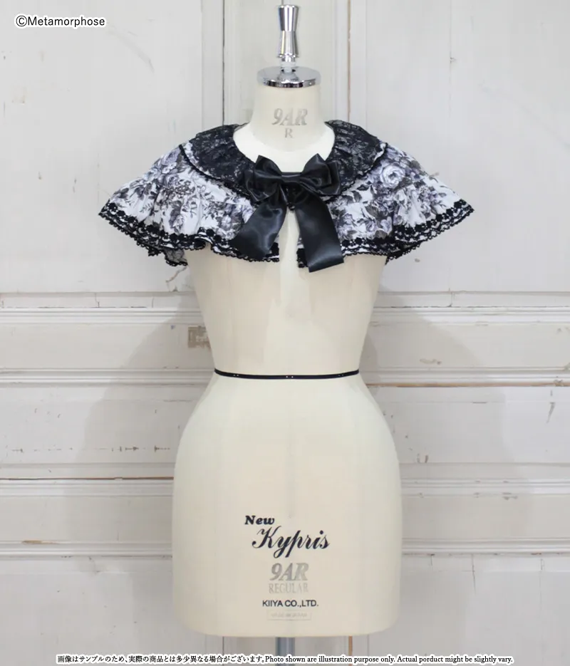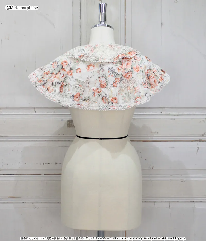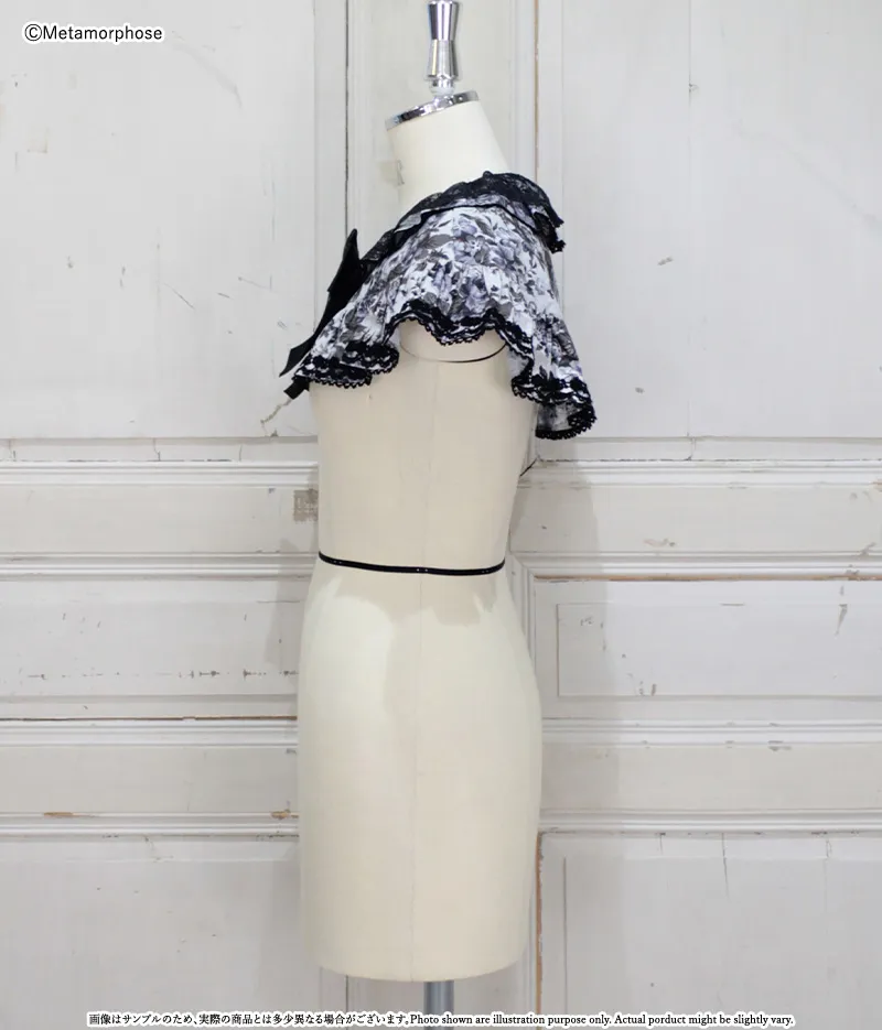 肩まわりをふわりと優しく覆うケープは繊細なレース使いでクラシカルなムードを盛り上げます。