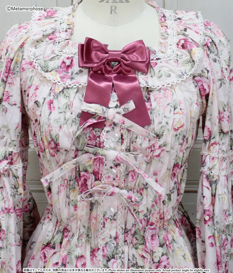 ローズピンク×生成レース×ローズピンクリボン×オフ白釦