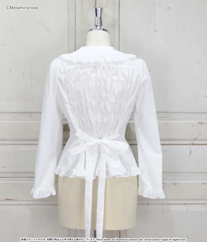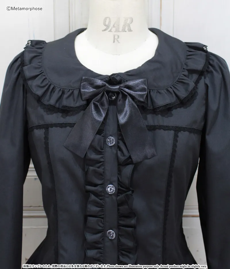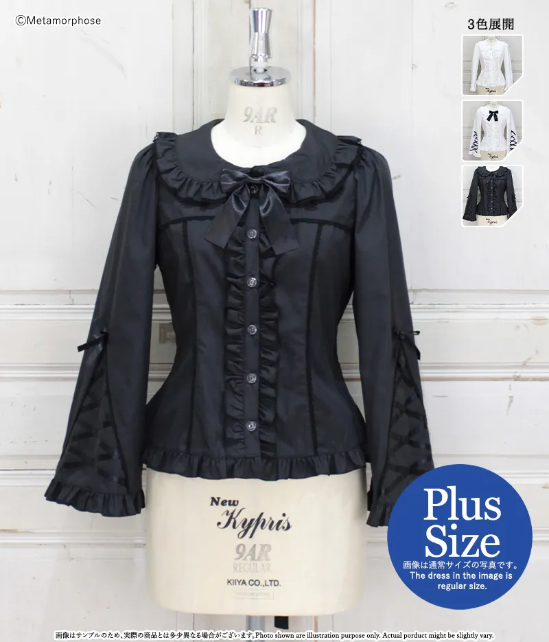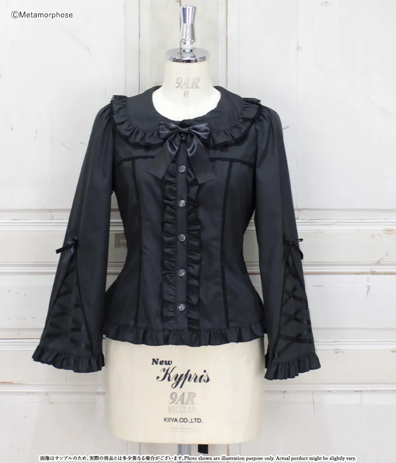 ゆったりと広がるフレアのお袖にサテンリボンのレースアップ風飾りがポイントのBLです。
