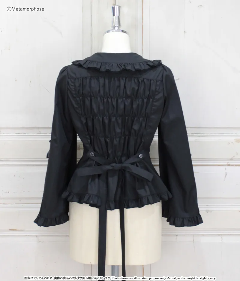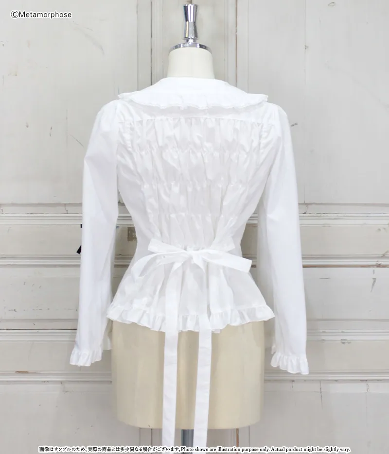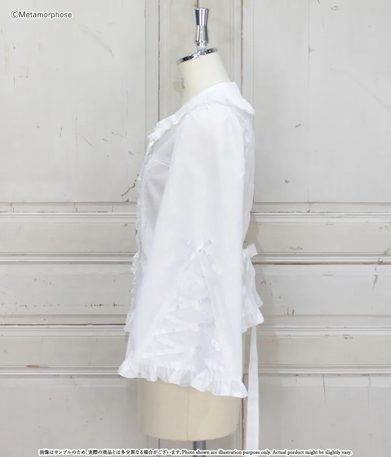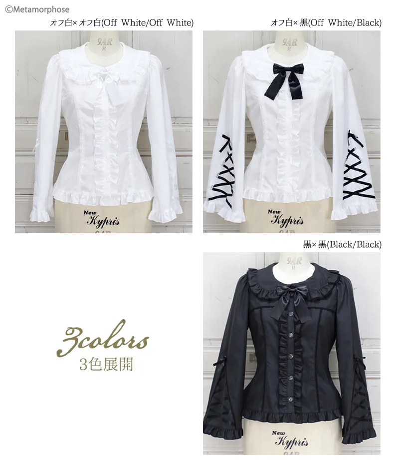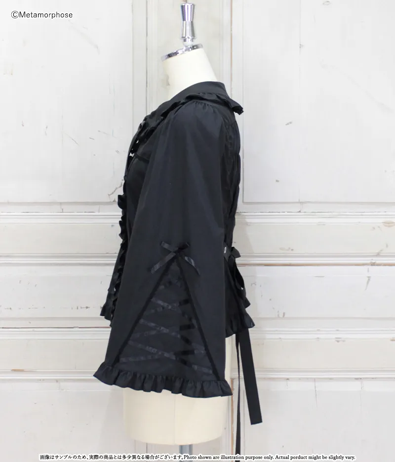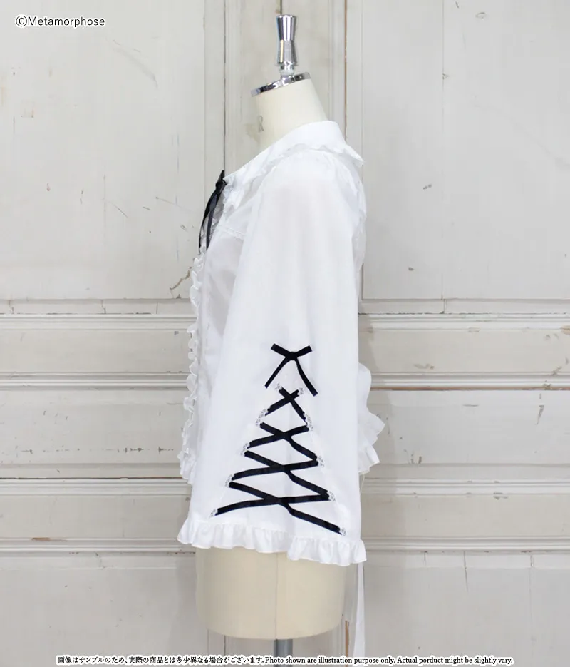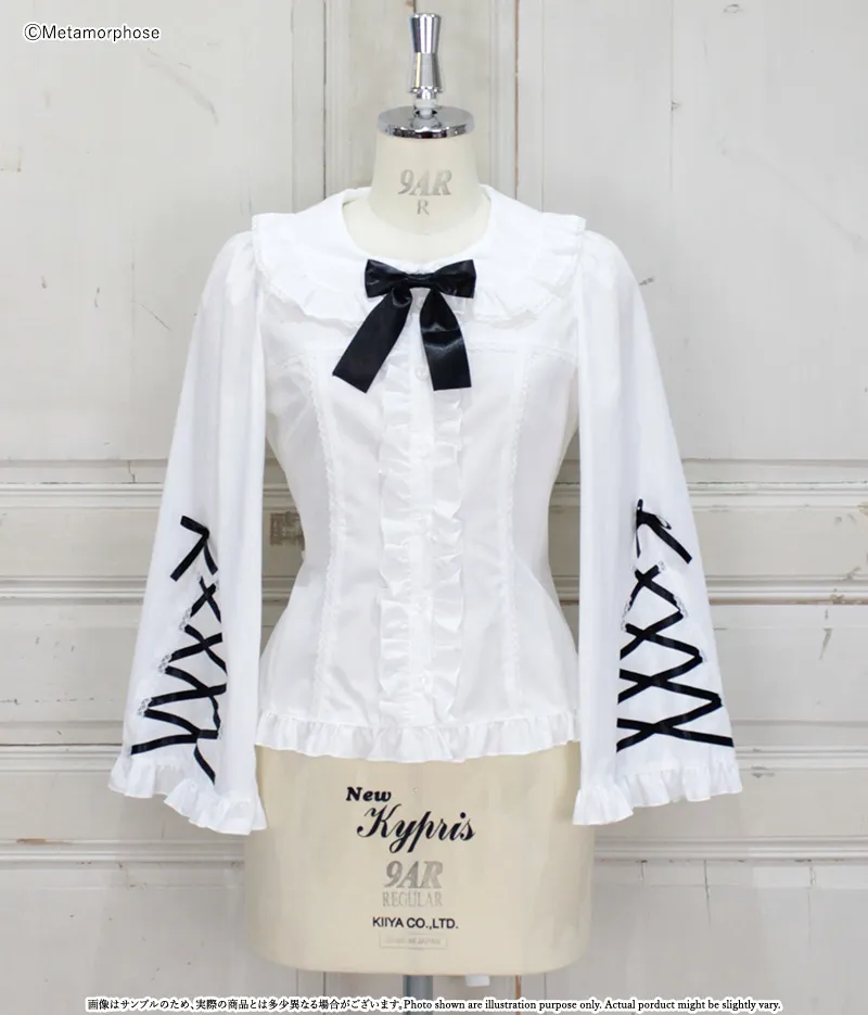 ゆったりと広がるフレアのお袖にサテンリボンのレースアップ風飾りがポイントのBLです。