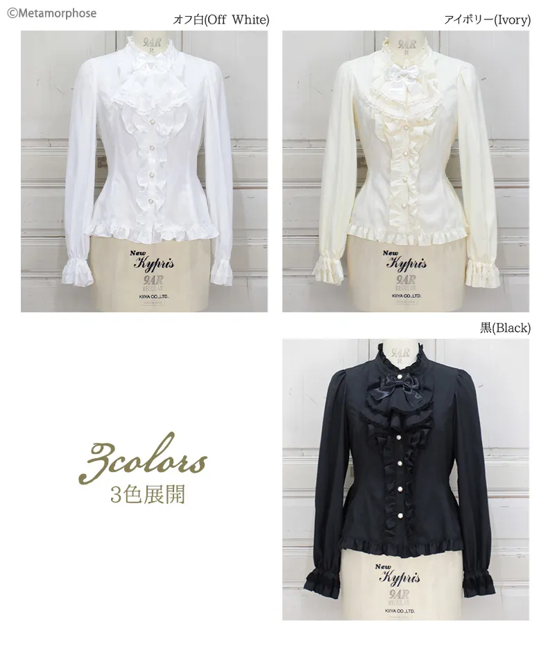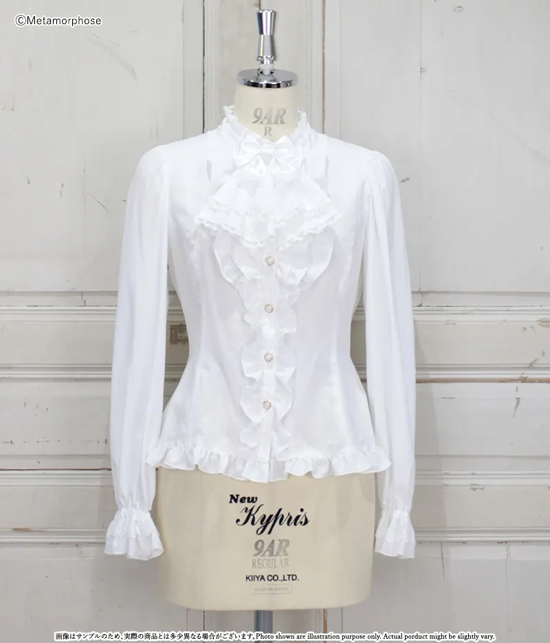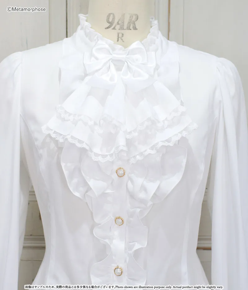 チュールレースが美しい大きなフリルジャボがポイントのブラウスです。