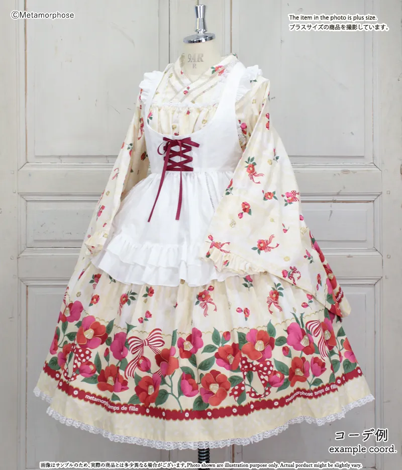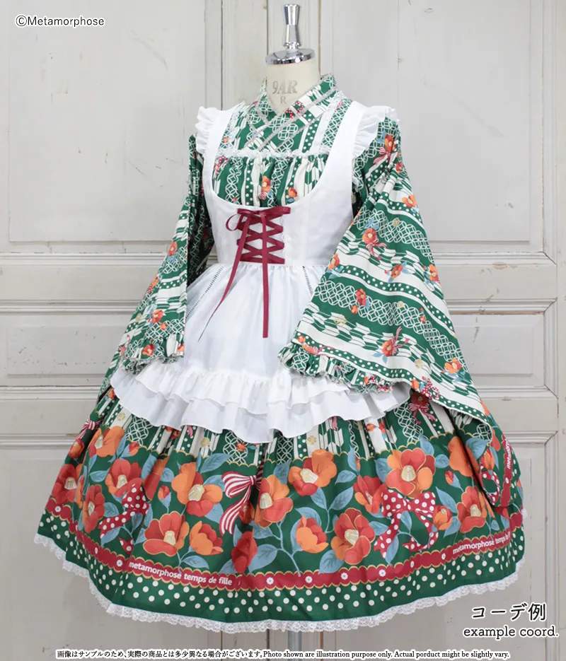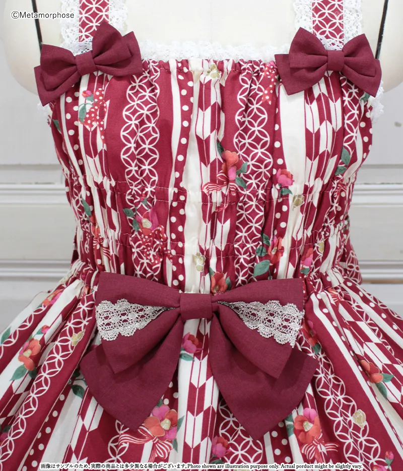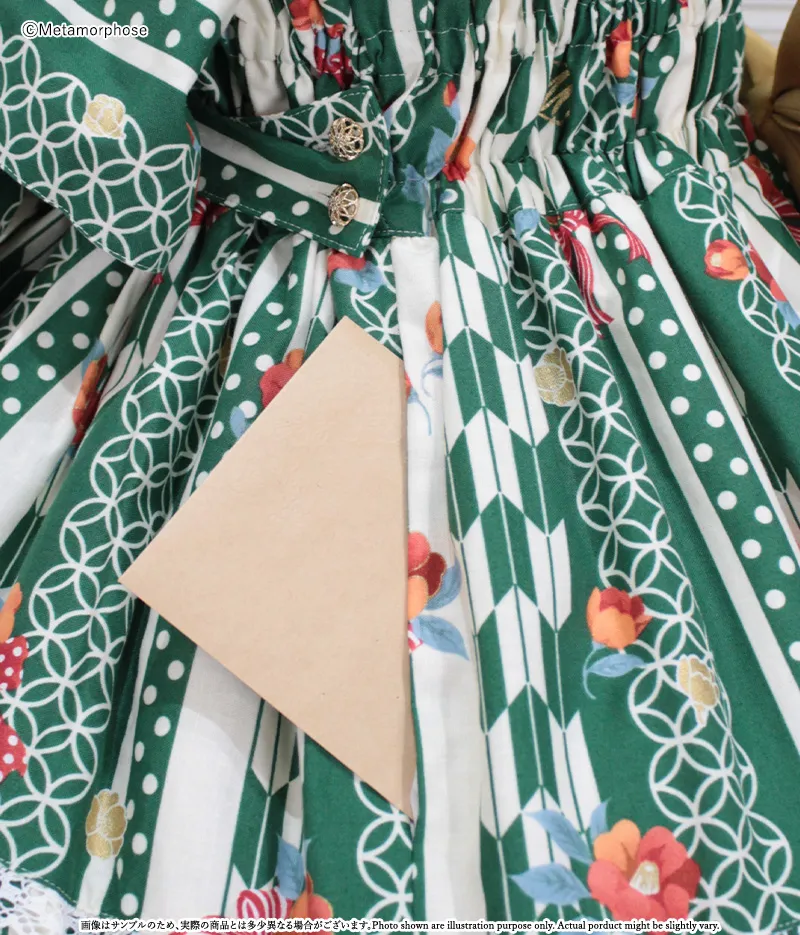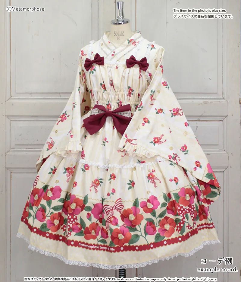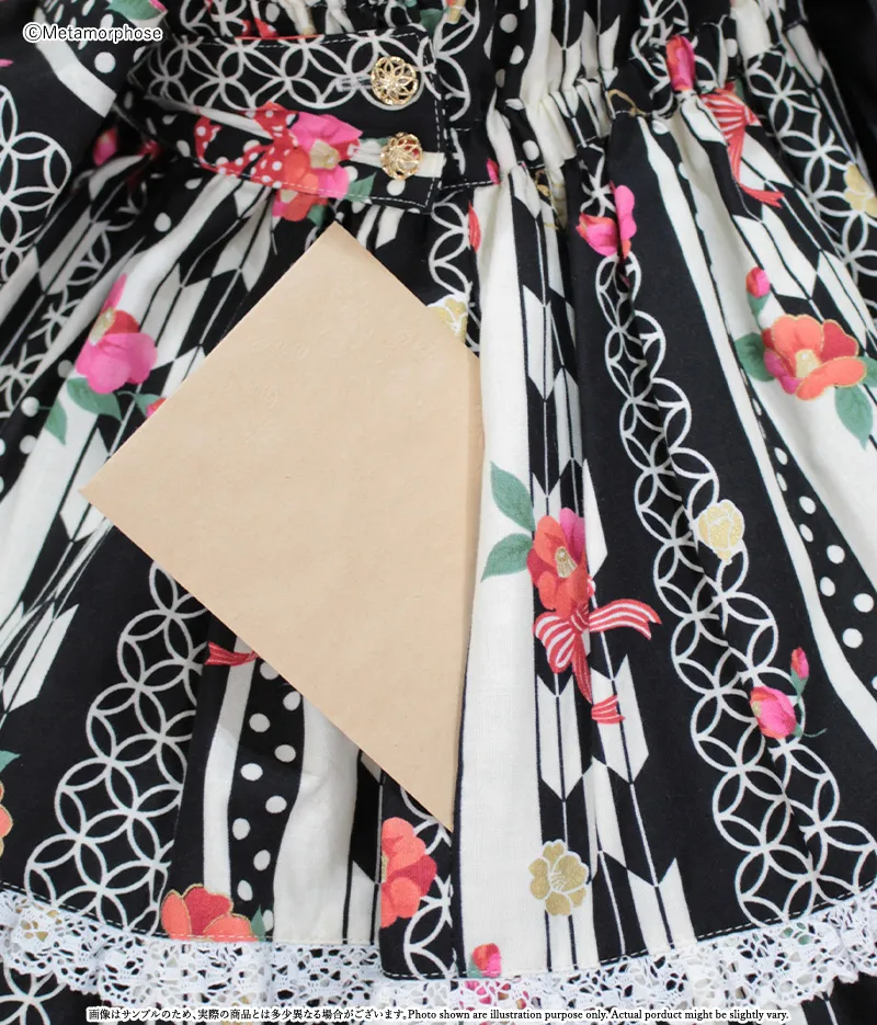 オリジナル<おとめの恋つばき>プリント生地(綿100%)、別布:アムンゼン(ポリエステル100%)、裏地(ポリエステル100%)、トーションレース、ラメトーションレース