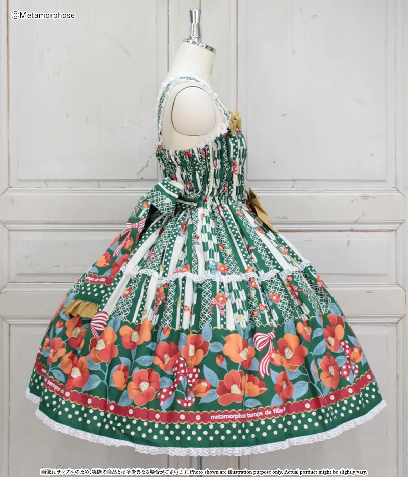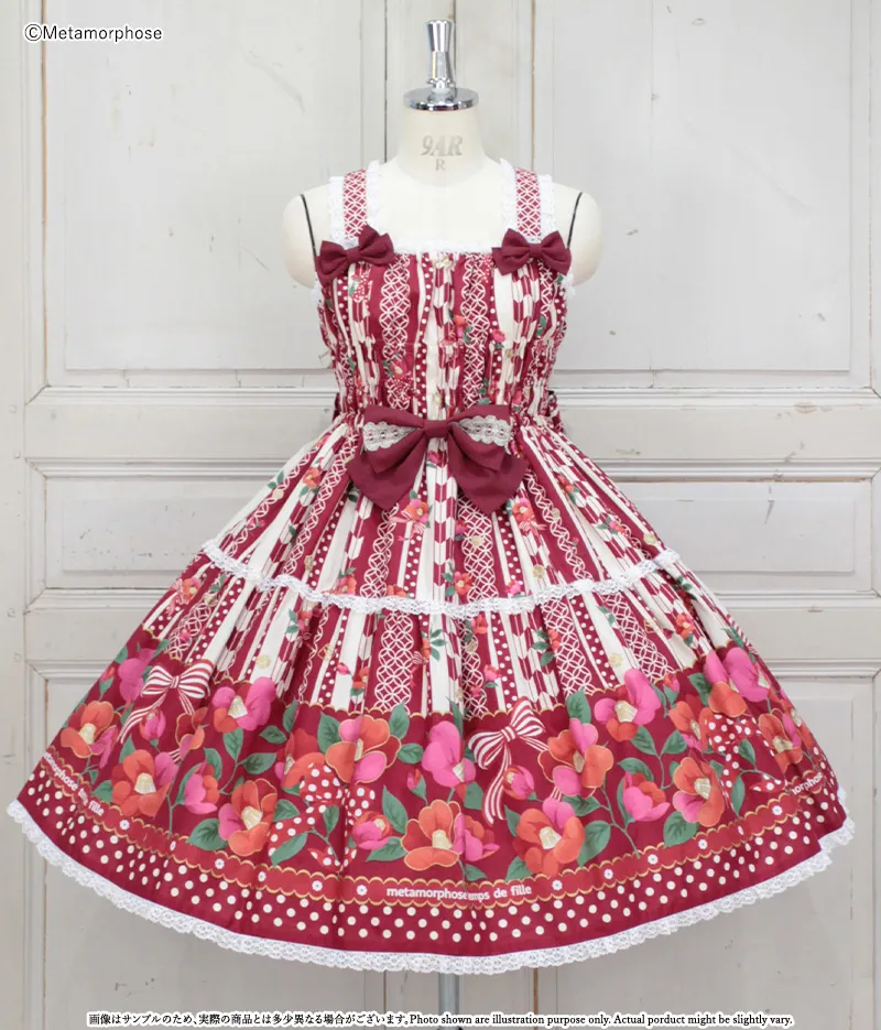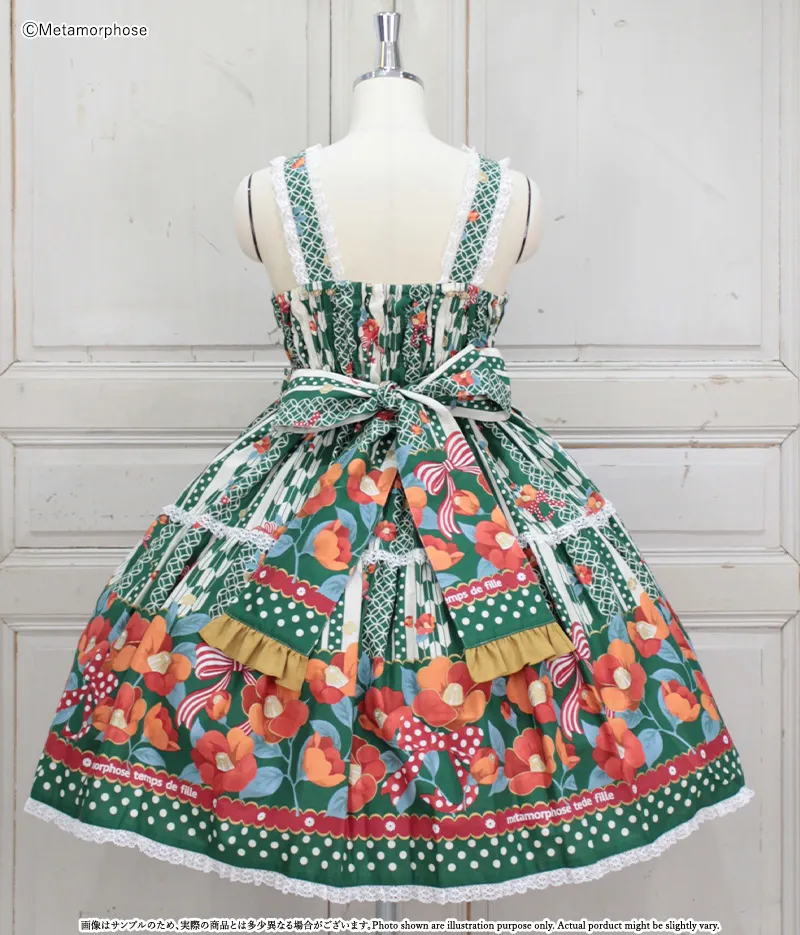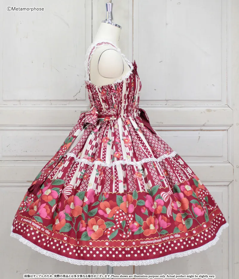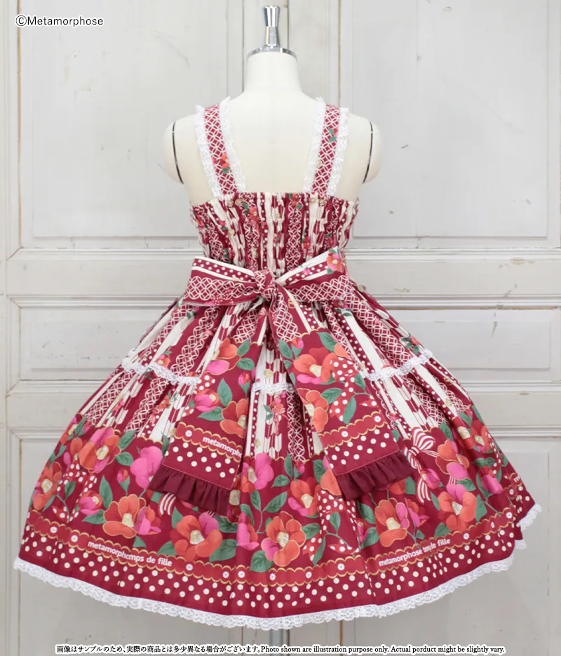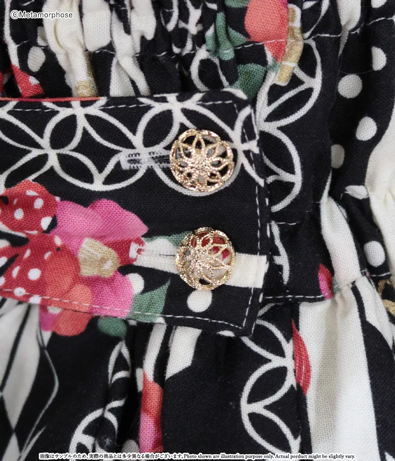 オリジナル<おとめの恋つばき>プリント生地(綿100%)、別布:アムンゼン(ポリエステル100%)、裏地(ポリエステル100%)、トーションレース、ラメトーションレース