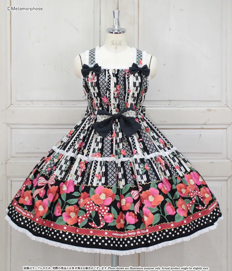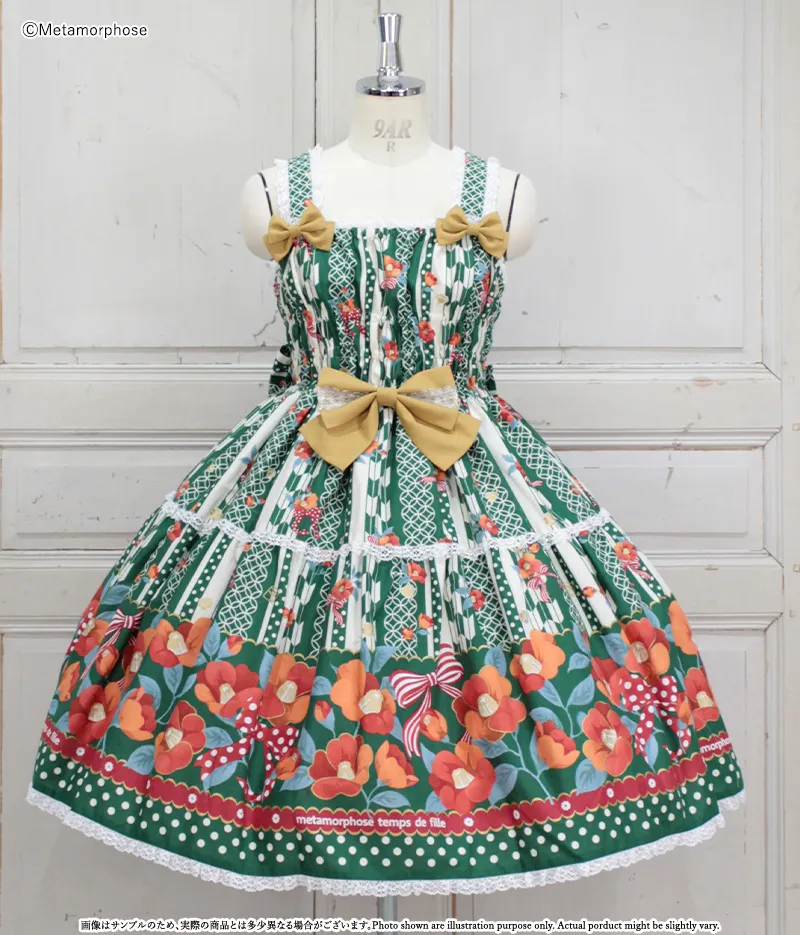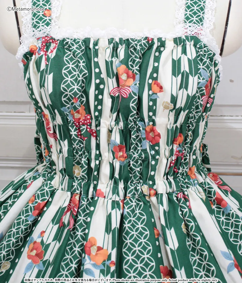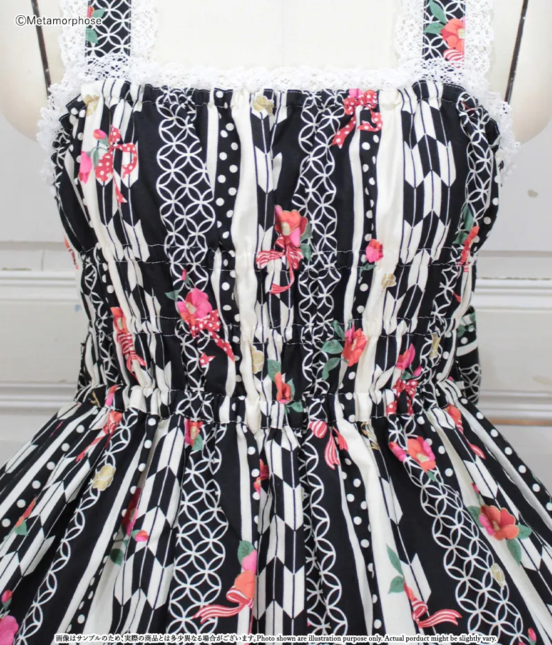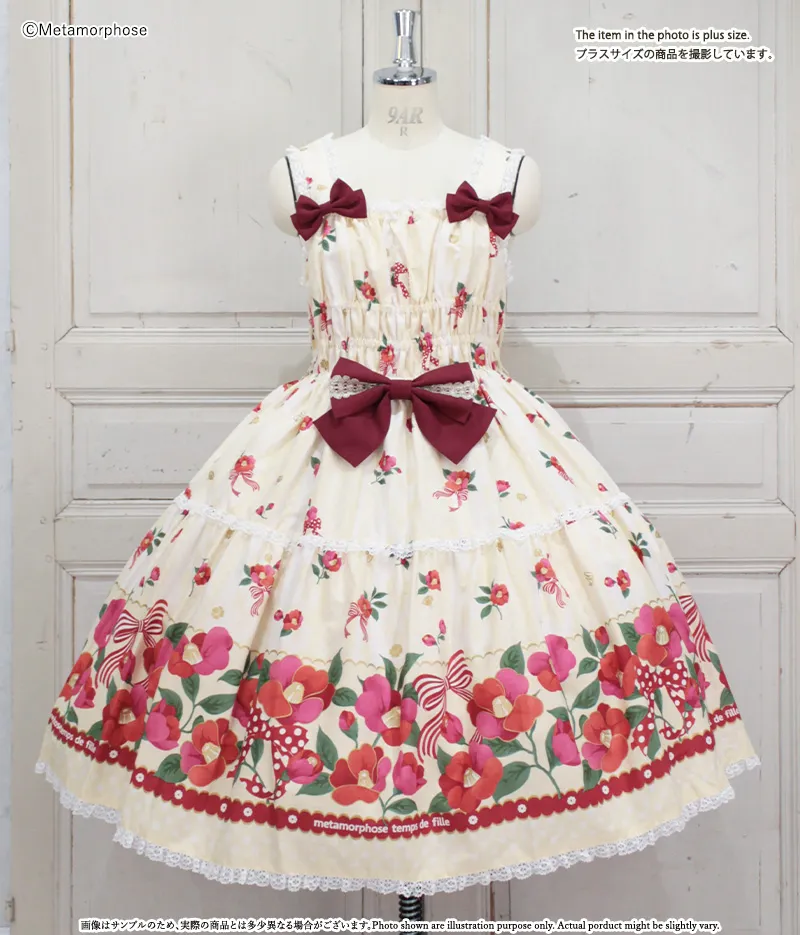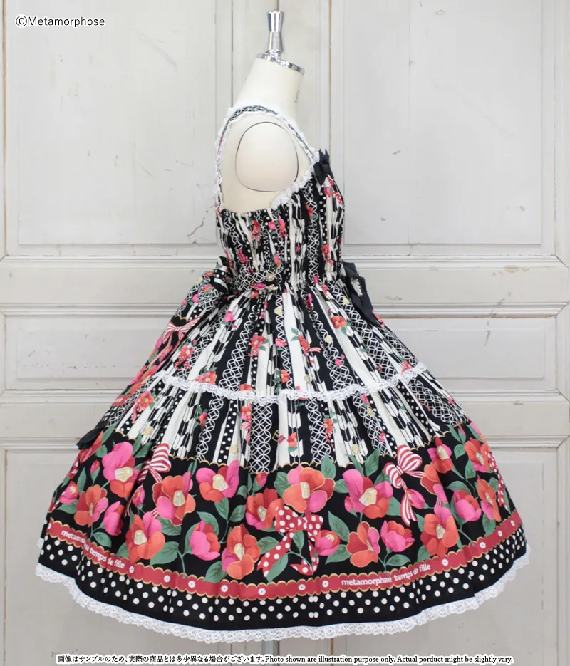 オリジナル<おとめの恋つばき>プリント生地(綿100%)、別布:アムンゼン(ポリエステル100%)、裏地(ポリエステル100%)、トーションレース、ラメトーションレース