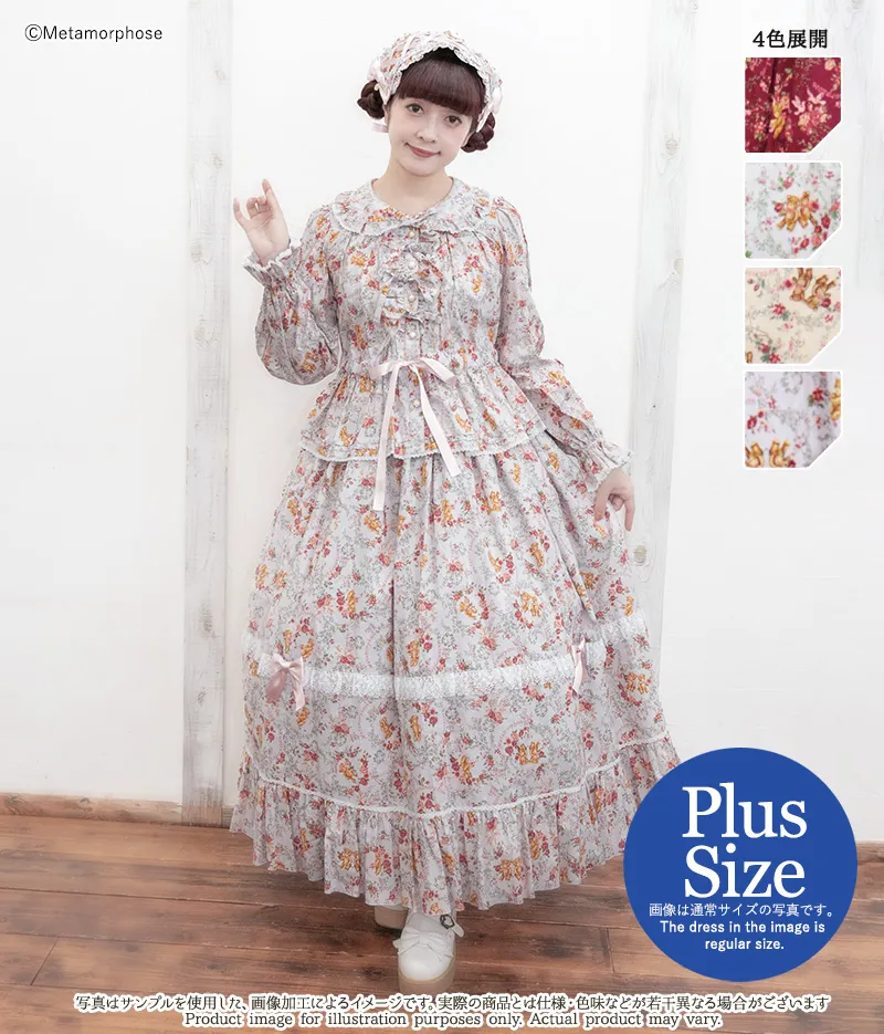 【プラスサイズ】ゴブラン風くまちゃんレースアップフリルジャンパースカート