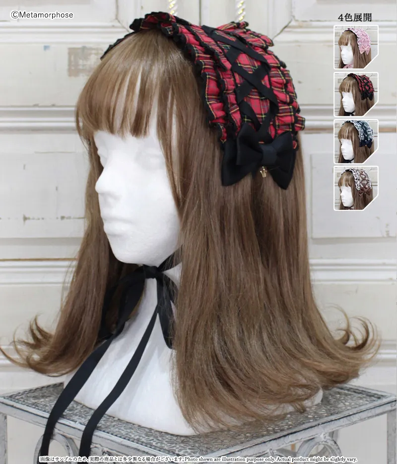 定番のレースアップタイプのヘッドドレスはジャンパースカートとお揃いでコーデして王道のロリータちゃんらしいムードに♡