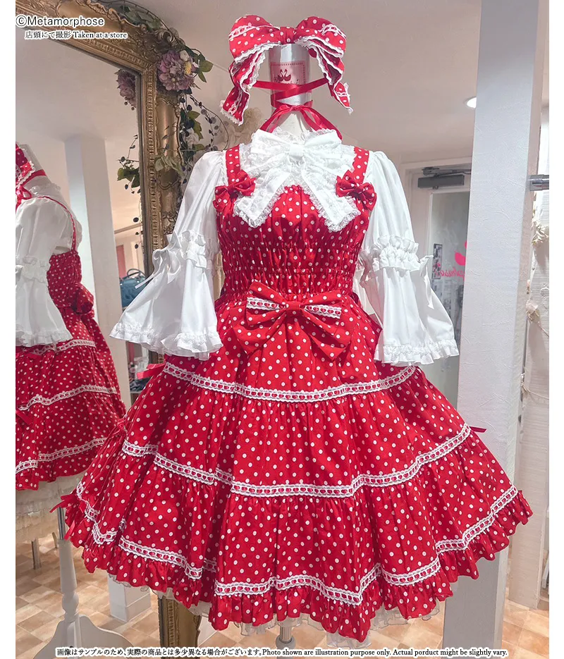 <搭配商品> Candy 腰部松紧三段裙摆JSK(波点印花) 【Plus size】Candy 腰部松紧三段裙摆JSK(波点印花) Candy 梯格蕾丝大蝴蝶结发带(波点印花) スタンドカラーフリルリボン姫袖ブラウス・TCブロード 【プラスサイズ】スタンドカラーフリルリボン姫袖ブラウス・TCブロード 拉舍尔蕾丝及膝袜 木底风蝴蝶结厚底鞋 バラモチーフつきレースカフス 欧根纱裙撑(50cm) 【Plus size】欧根纱裙撑(54cm)