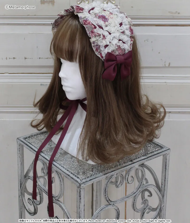 ゴブランブーケ レースフリルヘッドドレス えんじ系