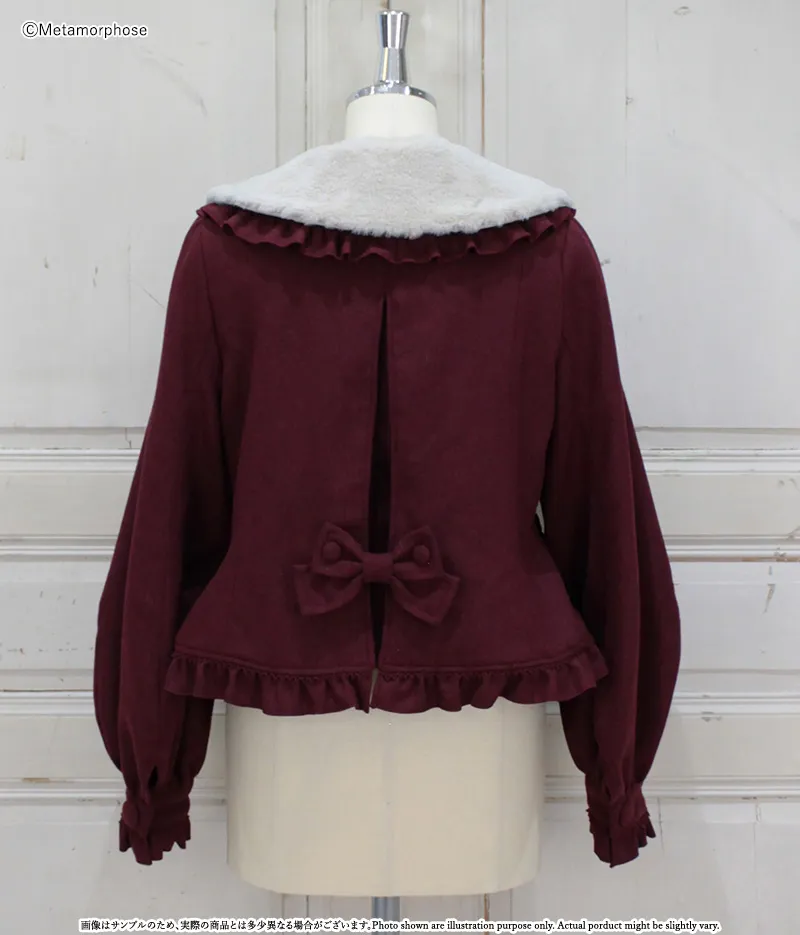 ・酒紅色(Bordeaux)×酒紅色蕾絲×酒紅色蝴蝶結×米色毛領