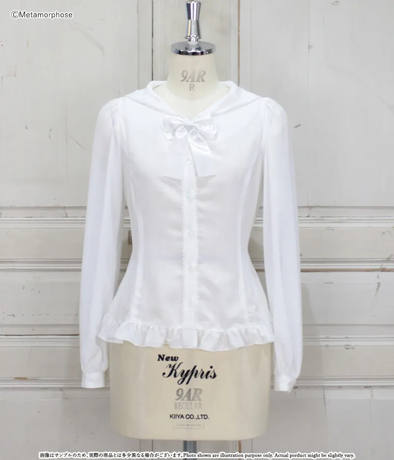 【預約】【Plus size】Dressy花邊領巾立領長袖襯衫