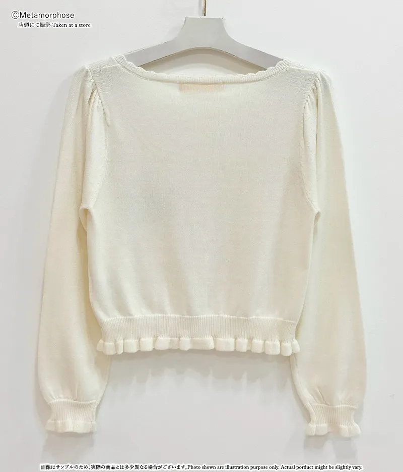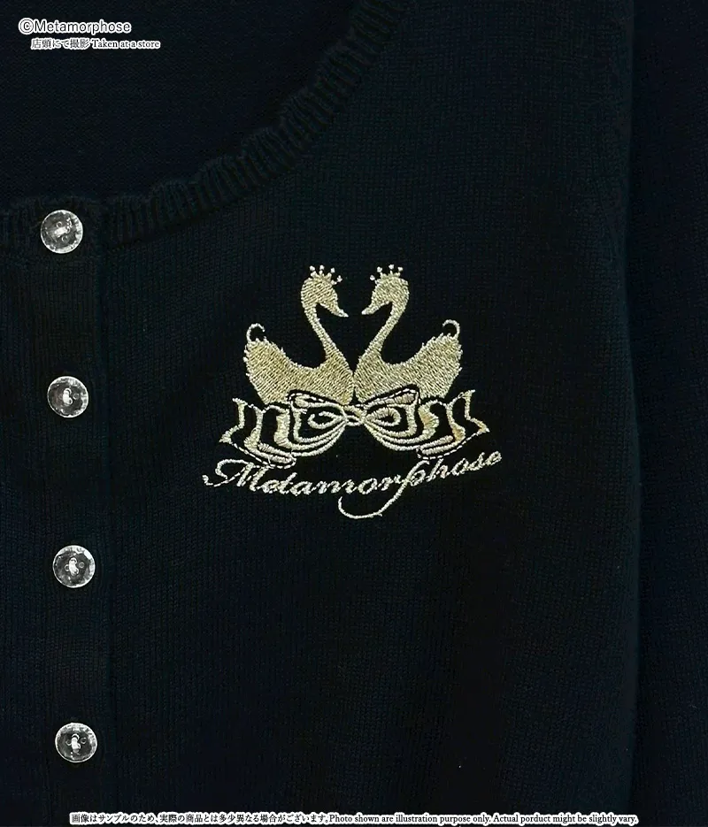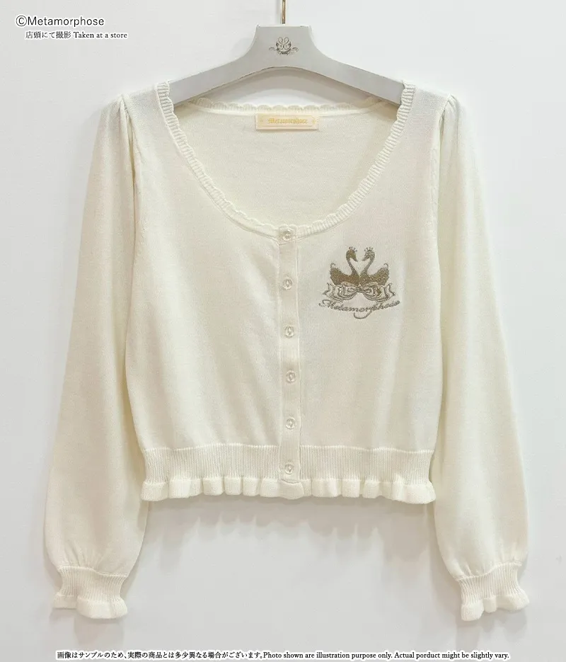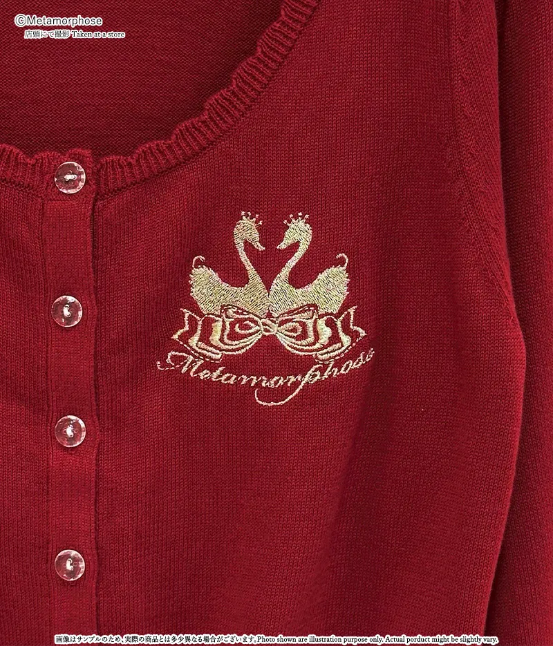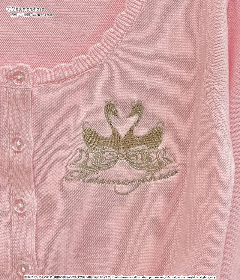 スワンとリボン刺繍の入った、プレーンなカーディガンです。